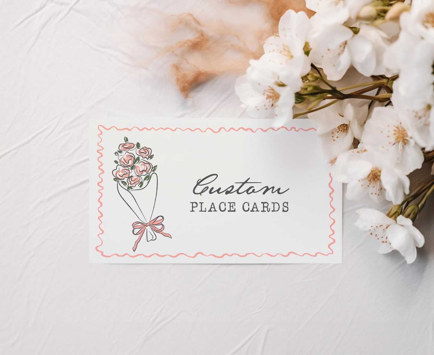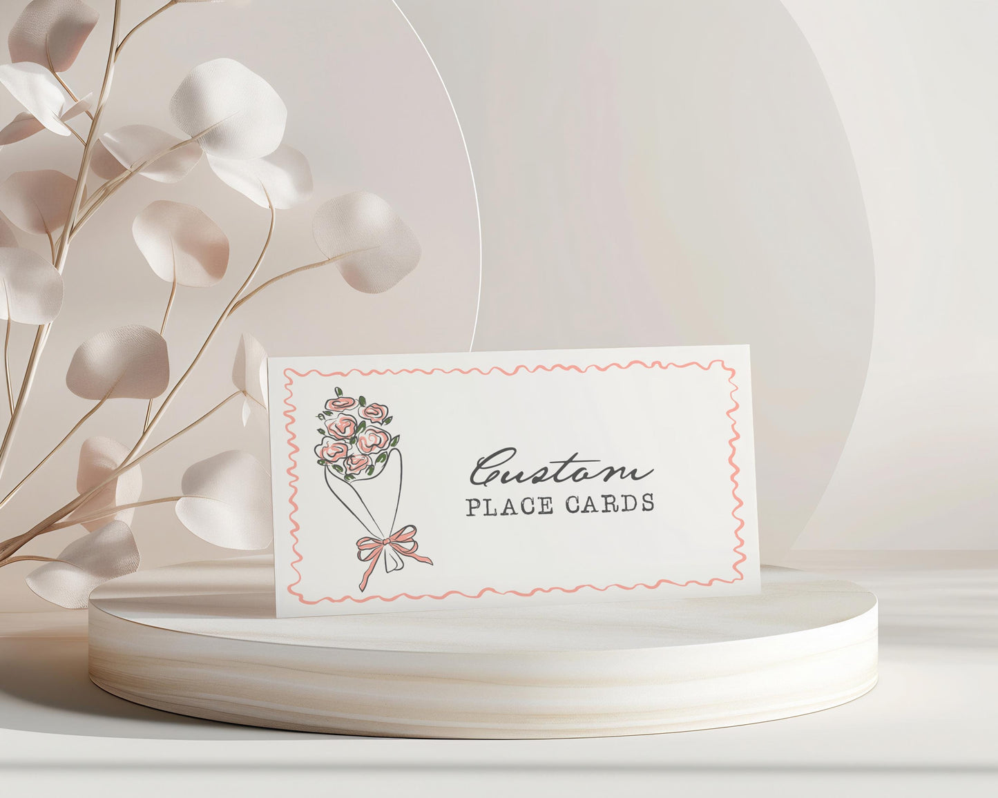 Pink Flower Market Place Card Templates, Market Bridal shower, Floral Birthday Party, Baby in Bloom Baby Shower Pink Coquette Flowers WP1044