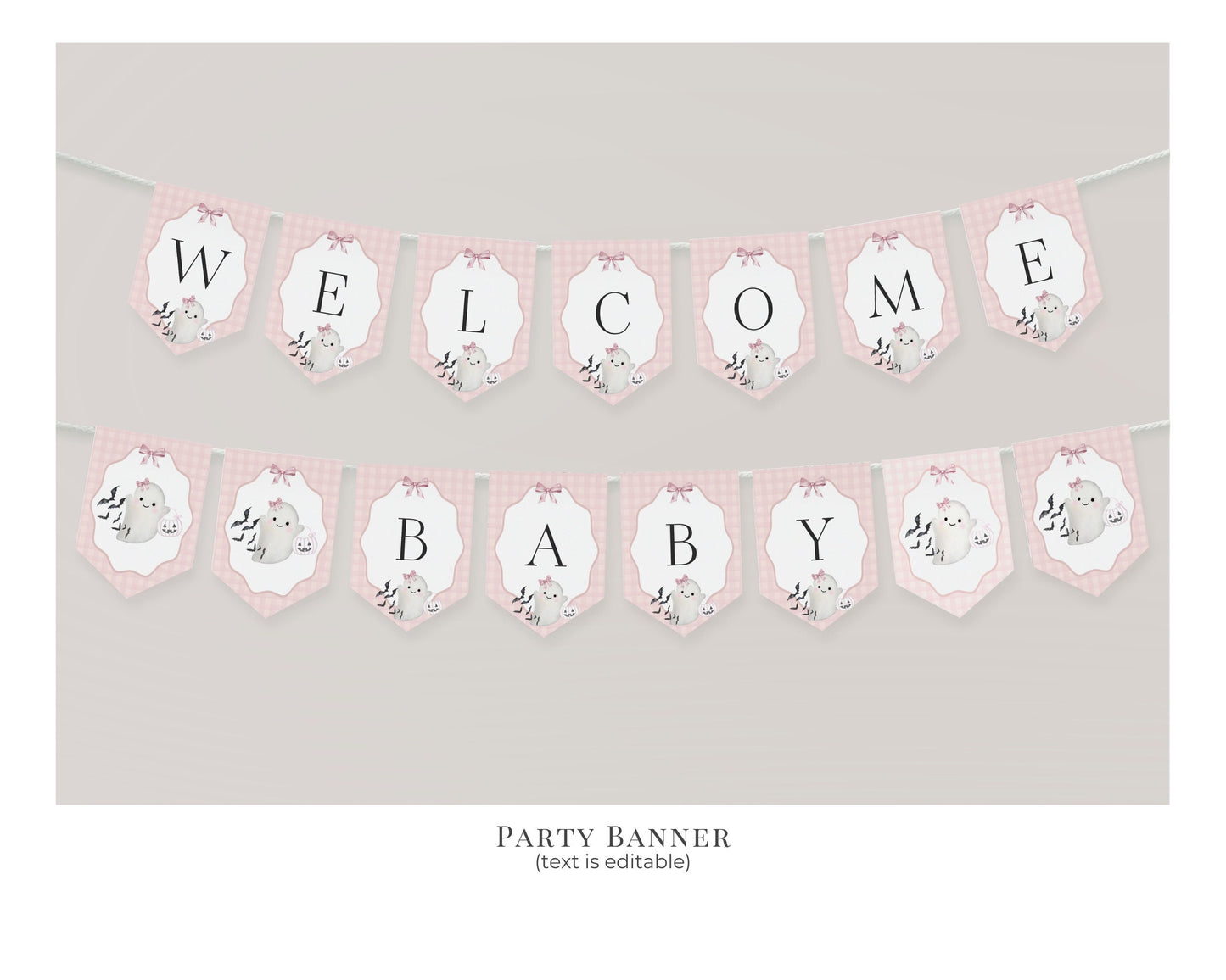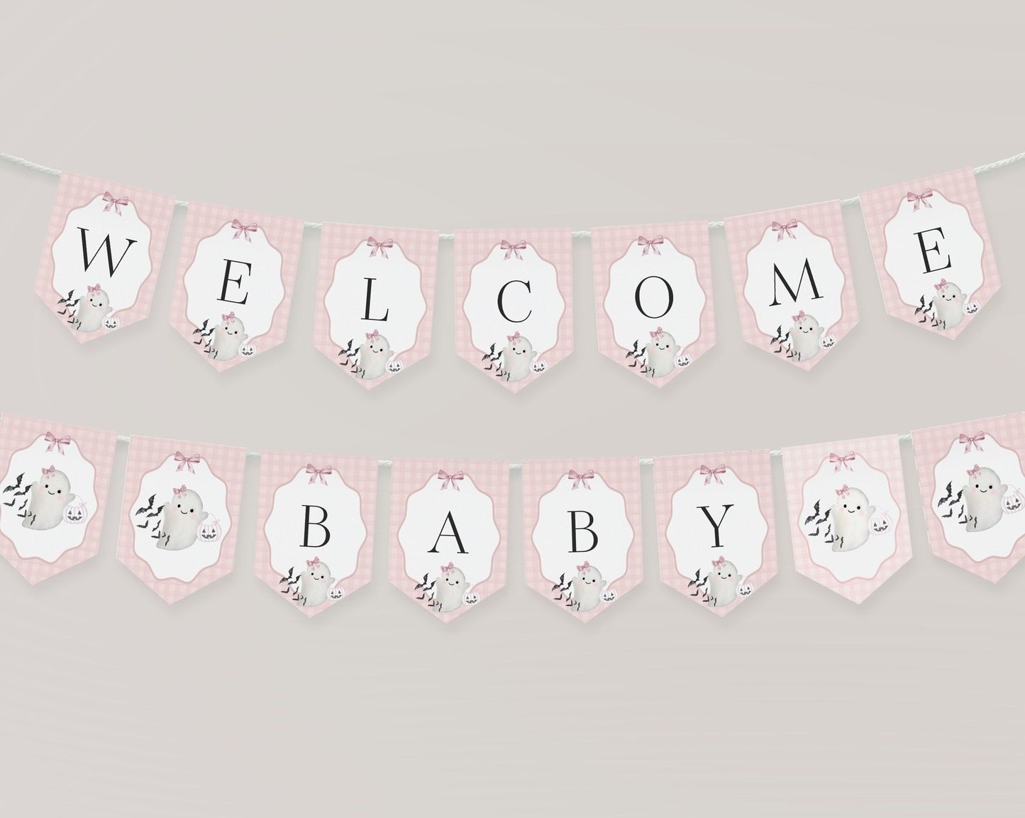 Pink Ghost Baby Shower Welcome Sign Printable Template
