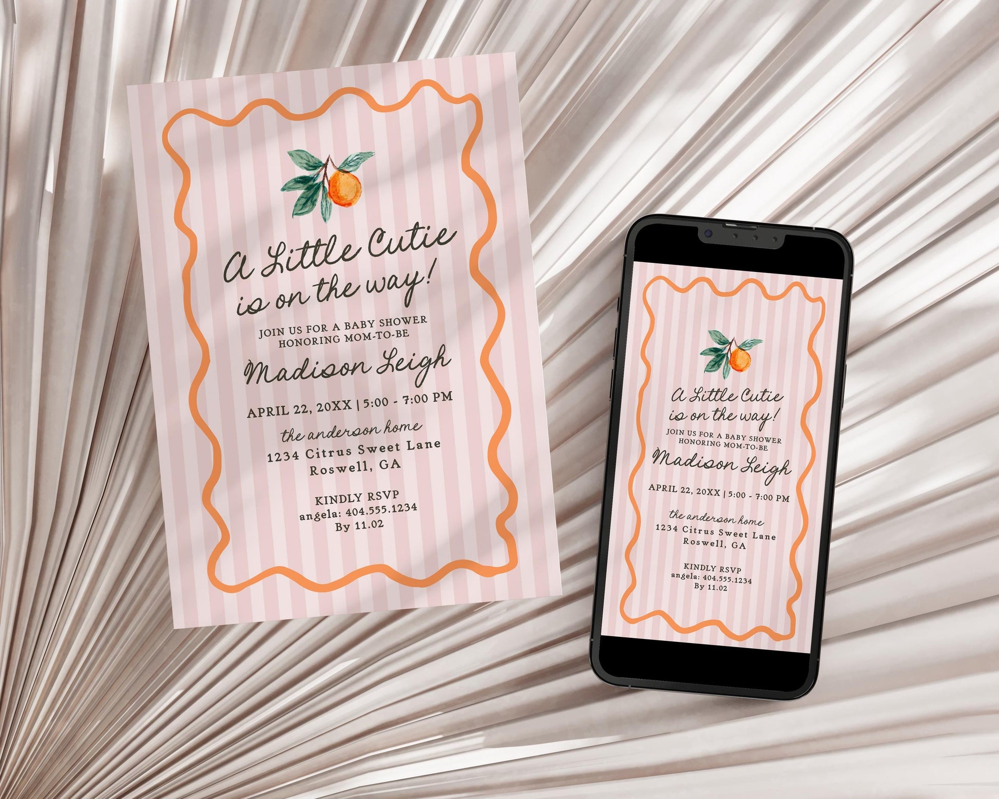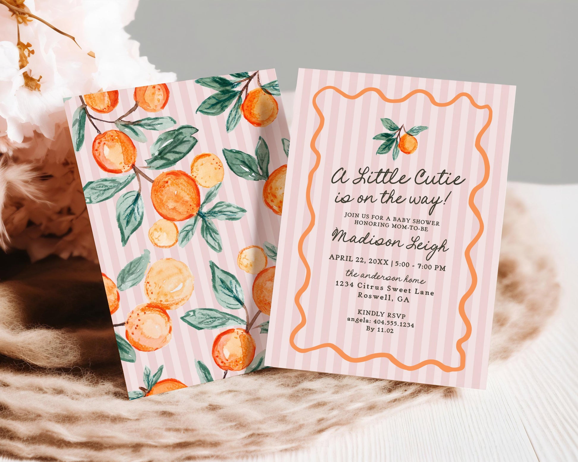 Pink Two Little Cuties Twins Baby Shower Invitation Template