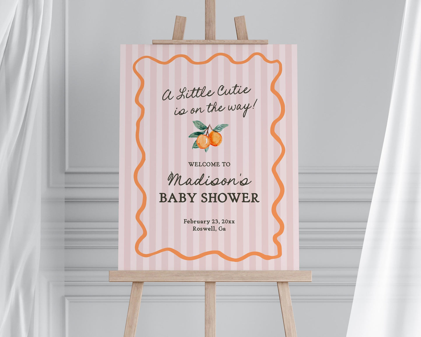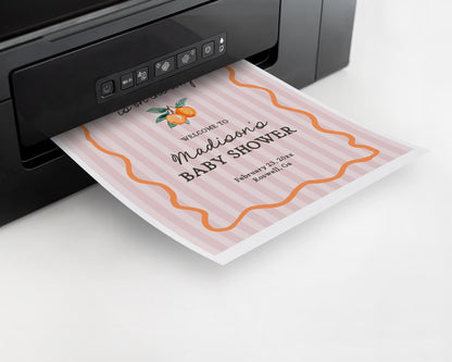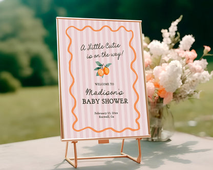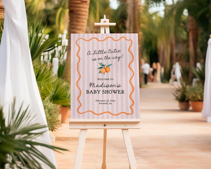 Pink Little Cutie Baby Shower Welcome Sign Template, Pastel Citrus Baby Sprinkle for Summer Baby Shower Retro Clementine Shower Decor WP1050