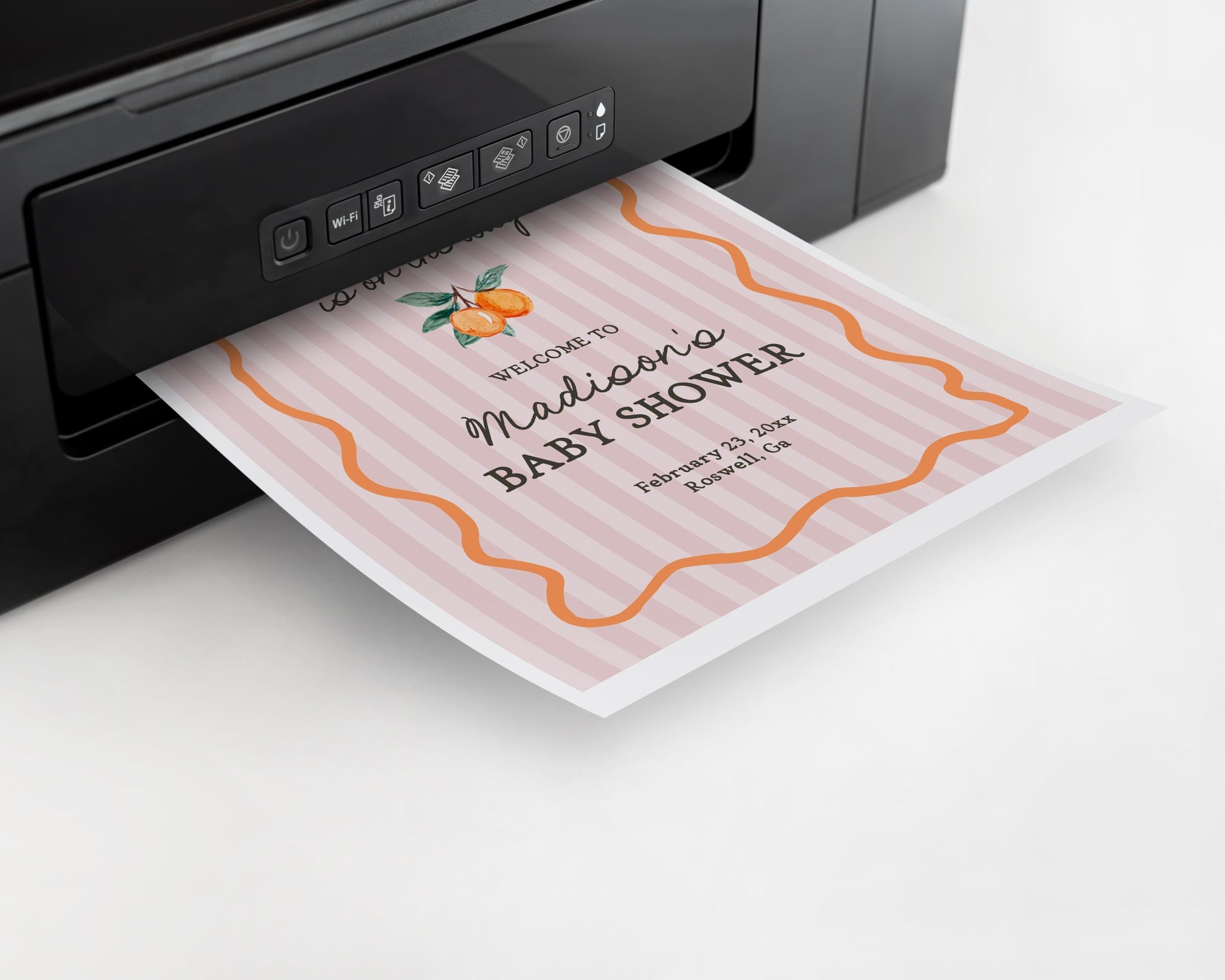 Pink Little Cutie Baby Shower Invitation Template, Pastel Citrus Baby Sprinkle for Summer Baby Shower, Retro Clementine Shower Decor WP1050