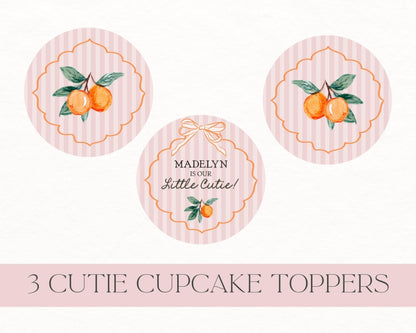 Pink Little Cutie Cupcake Toppers Printable Template, Pastel Citrus Baby Shower for Summer Birthday Party Decor WP1050