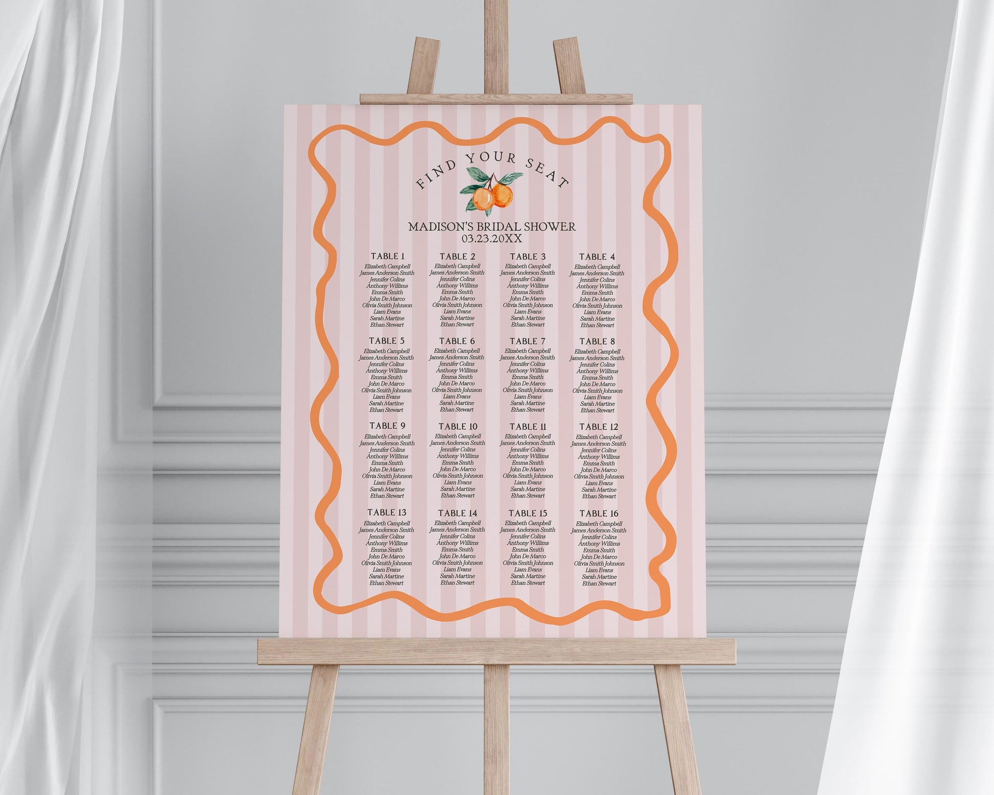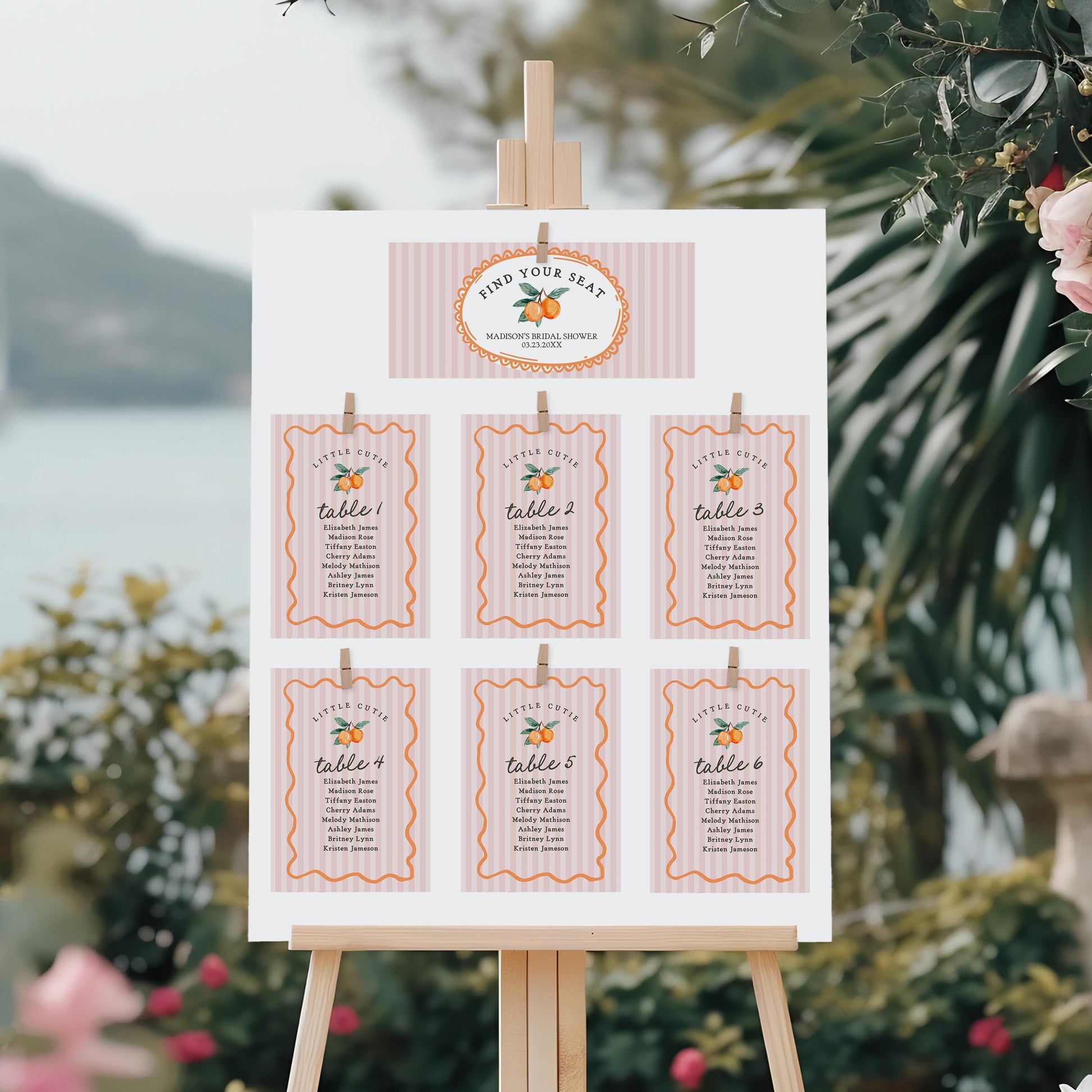 Pink Little Cutie Seating Chart Poster Template, Main Squeeze Bridal Shower, Citrus Baby Shower Decor for Summer Birthday Clementine WP1050