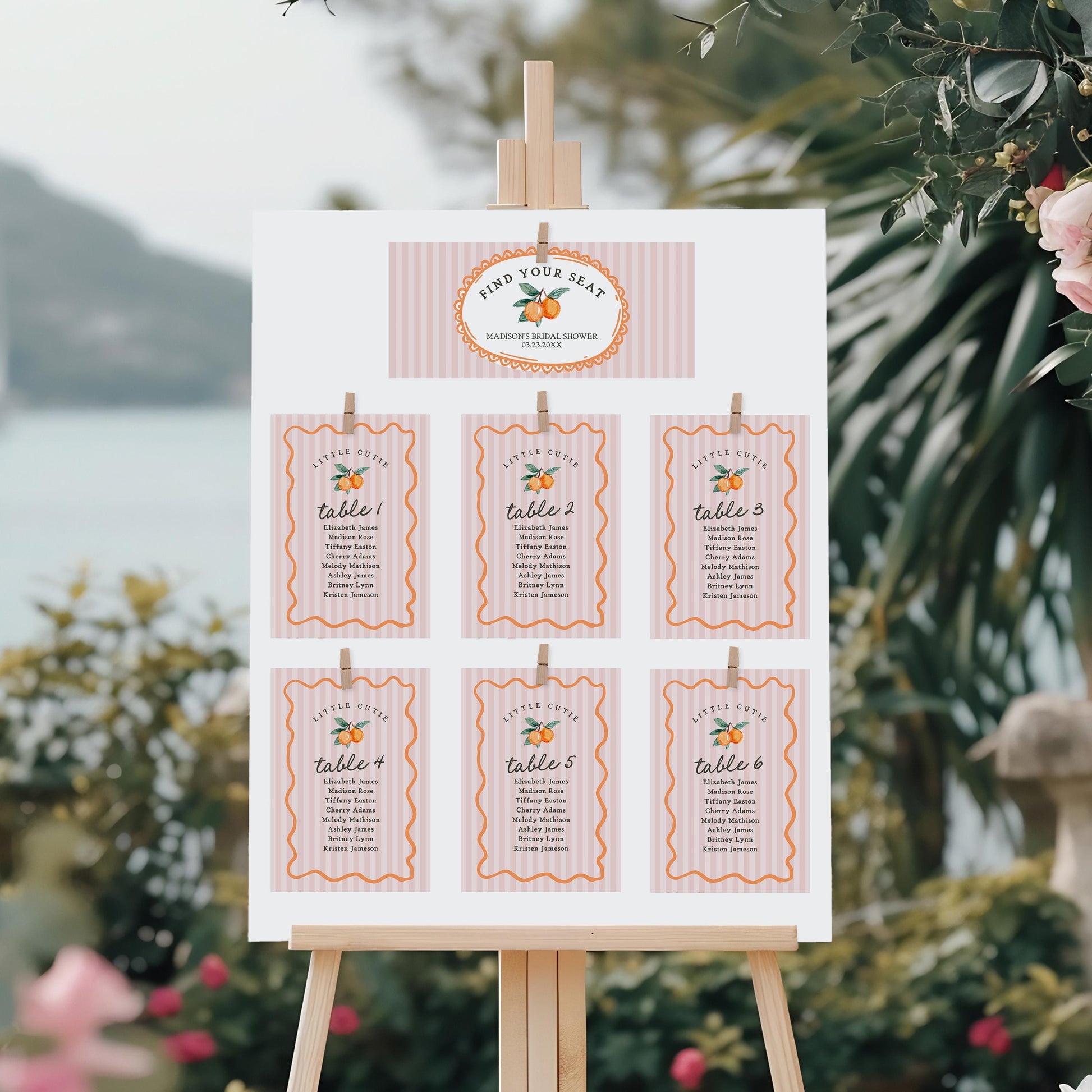 Pink Little Cutie Seating Chart Cards Template, Main Squeeze Bridal Shower, Citrus Baby Shower Decor for Summer Birthday Clementine WP1050