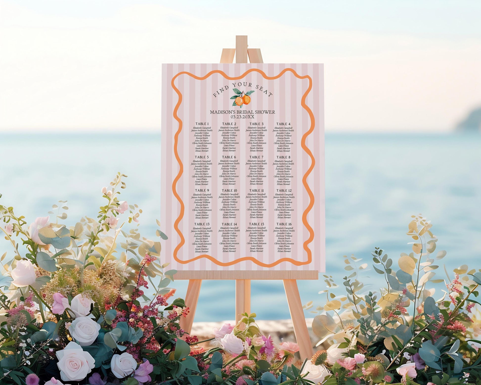 Pink Little Cutie Seating Chart Poster Template, Main Squeeze Bridal Shower, Citrus Baby Shower Decor for Summer Birthday Clementine WP1050