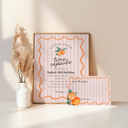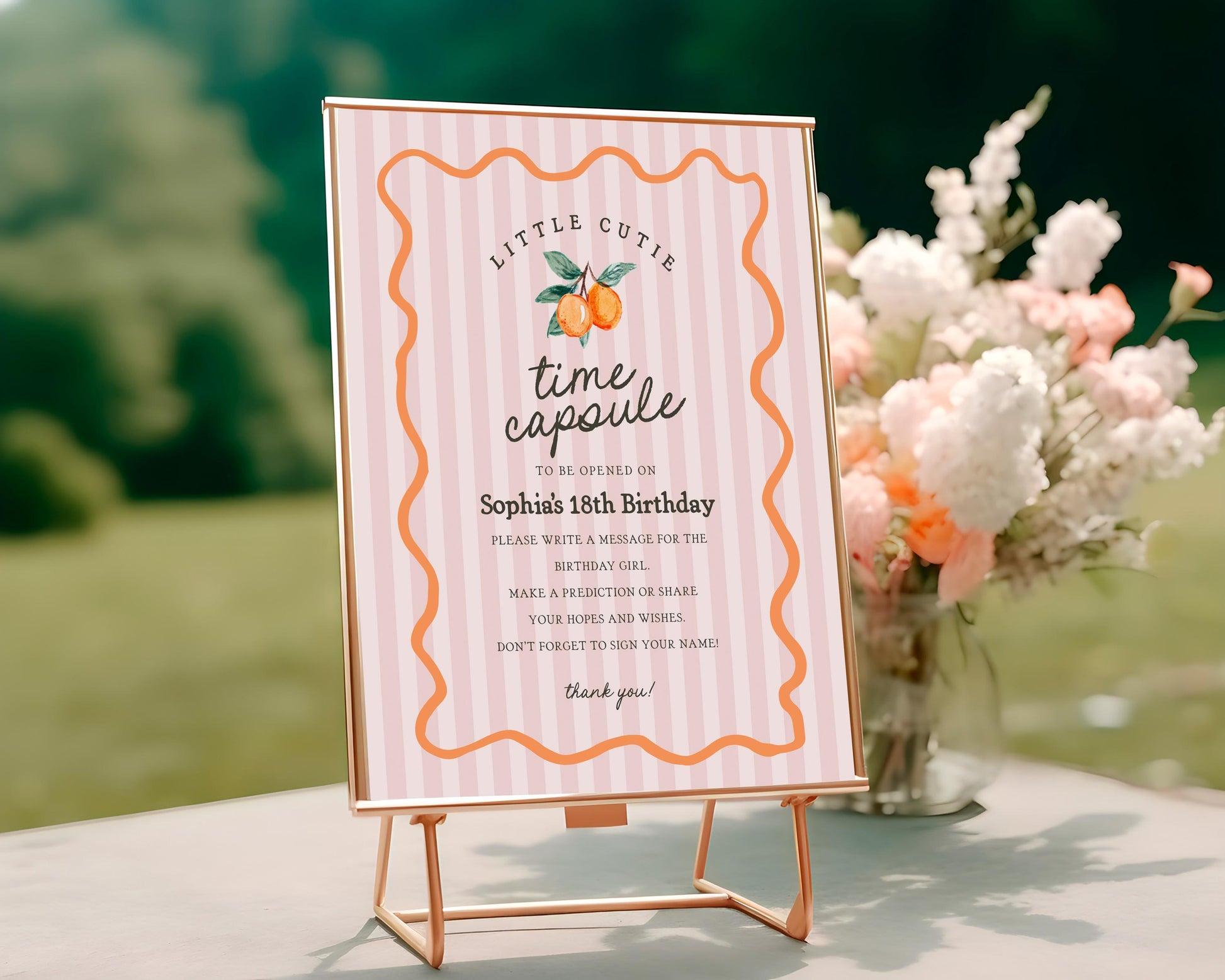 Pink Little Cutie Time Capsule 1st Birthday Template, Pastel Citrus Bday Party Decor Summer Birthday, Retro Little Cutie Clementine WP1050