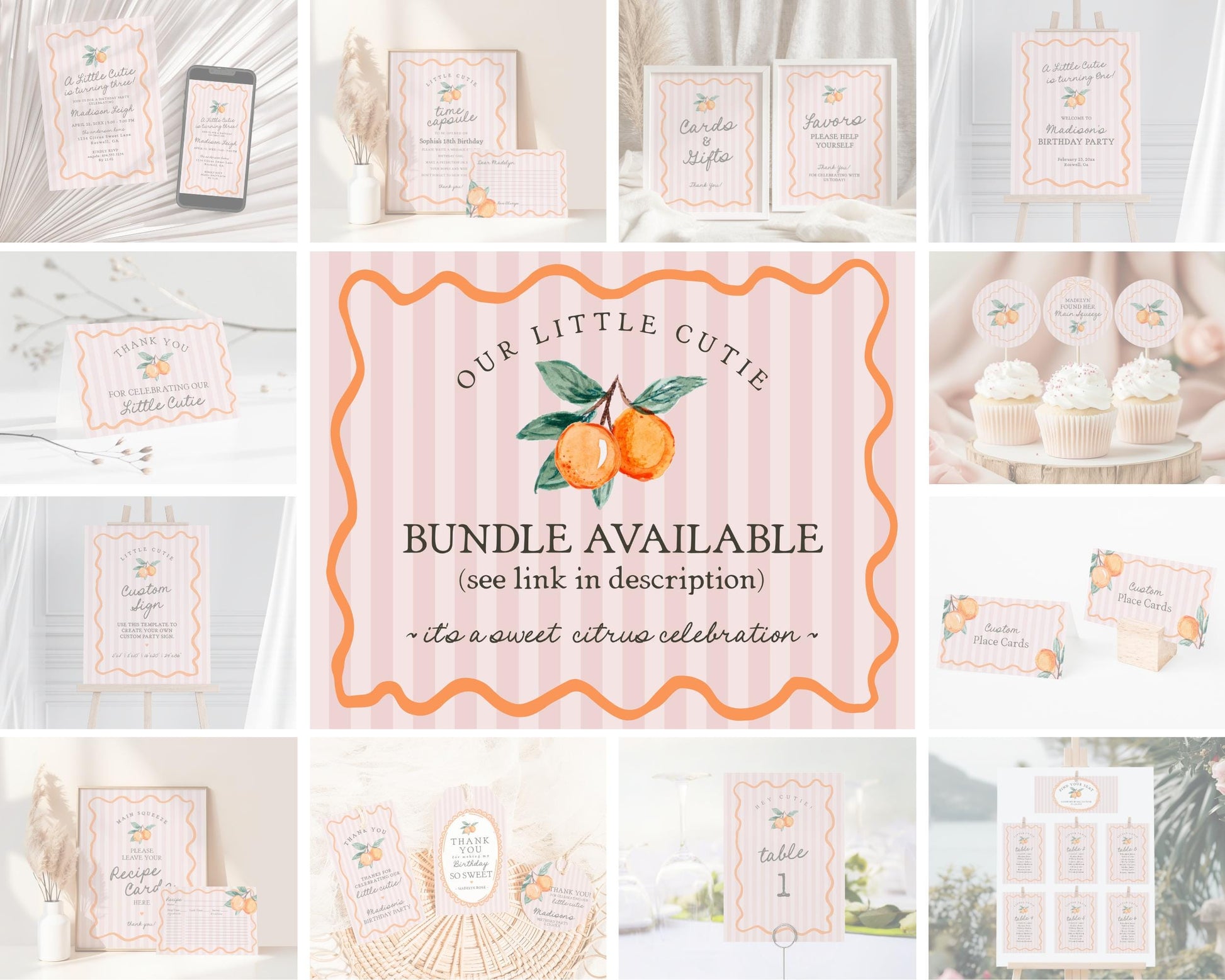 Pink Little Cutie Birthday Bundle Printable Template, Pastel Citrus Bday Party Decor for Summer Birthday, Retro Little Cutie Clementine