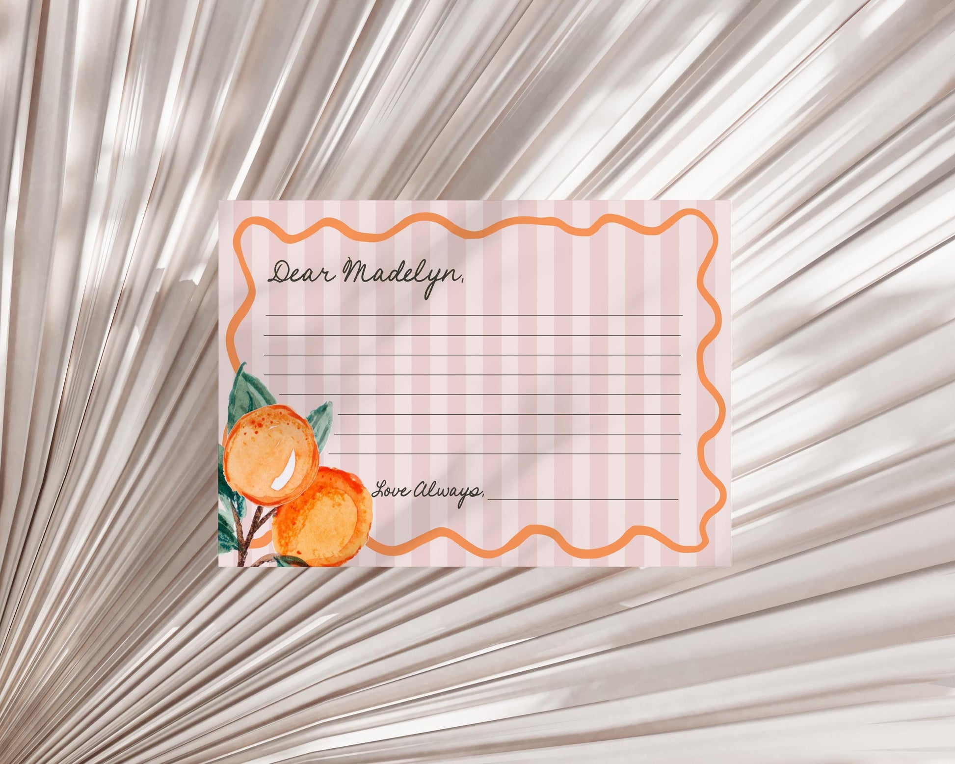 Pink Little Cutie Advice for Baby Cards Template, Pastel Citrus Baby Shower for Summer Baby Sprinkle, Retro Clementine Shower Decor WP1050