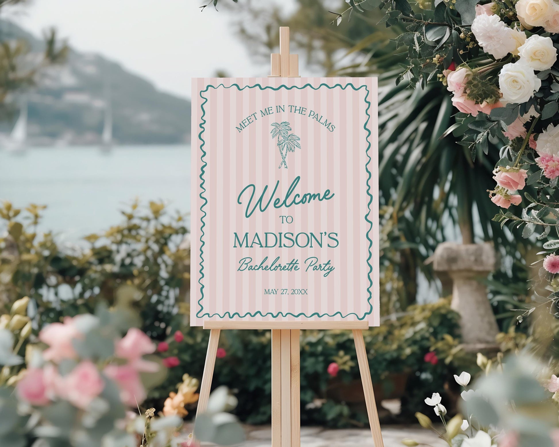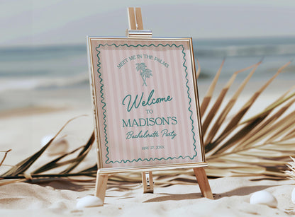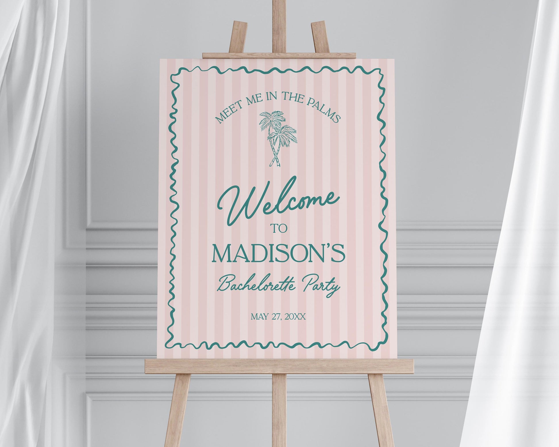 Pink Palm Springs Custom Sign Template, Vintage Palm Tree Beach Cabana Birthday Pool Party, Tropical Pastel Bachelorette Theme WP1046