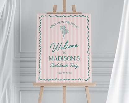 Pink Palm Springs Bachelorette Party Welcome Template, Vintage Palm Tree Beach Cabana Pool Party, Tropical Pastel Last Fling Bach WP1046