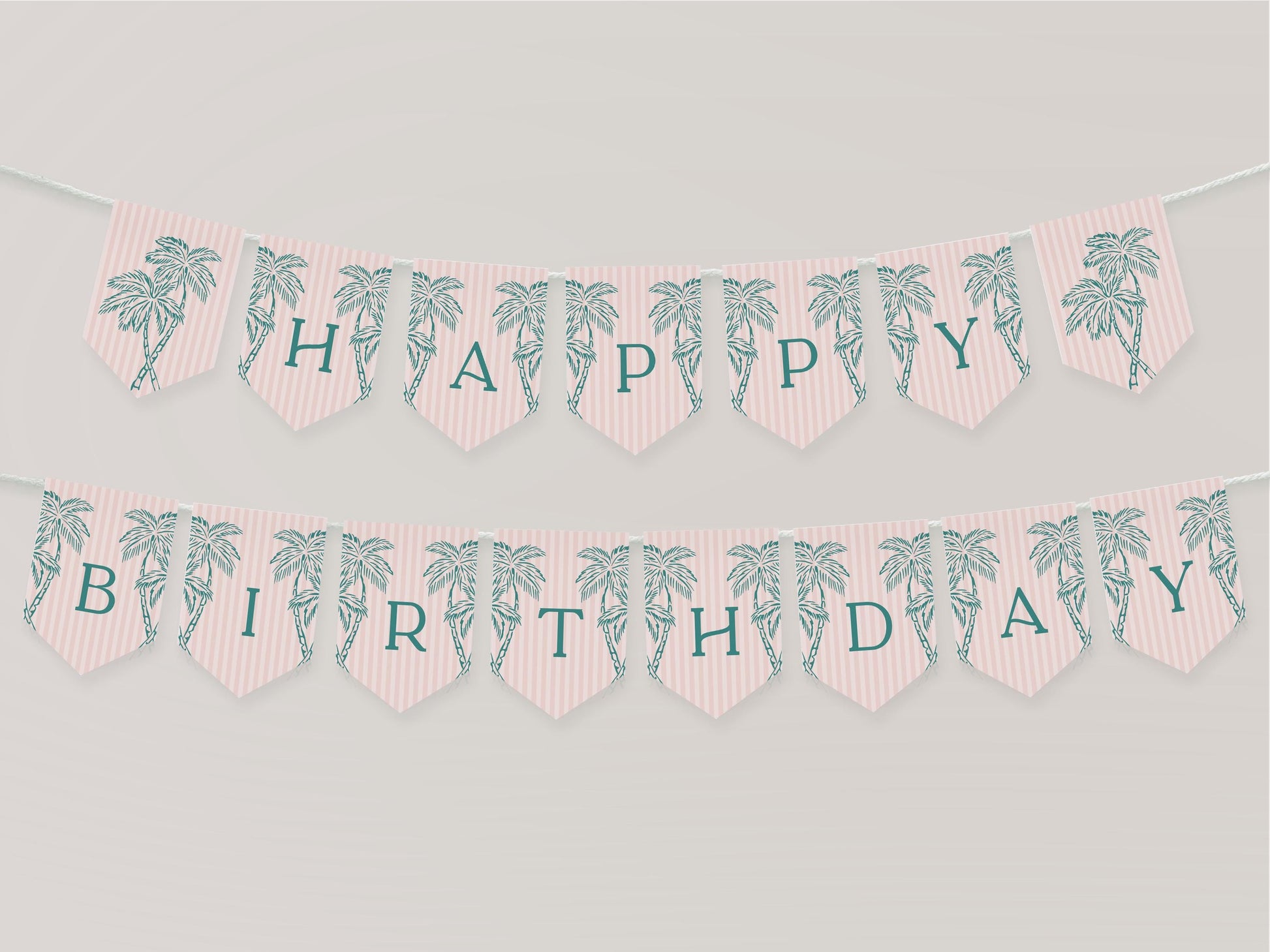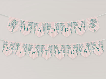 Pink Palm Springs Birthday Banner Template, Vintage Palm Tree Beach Cabana Birthday Pool Party, Retro Tropical Pastel Party Decor WP1046