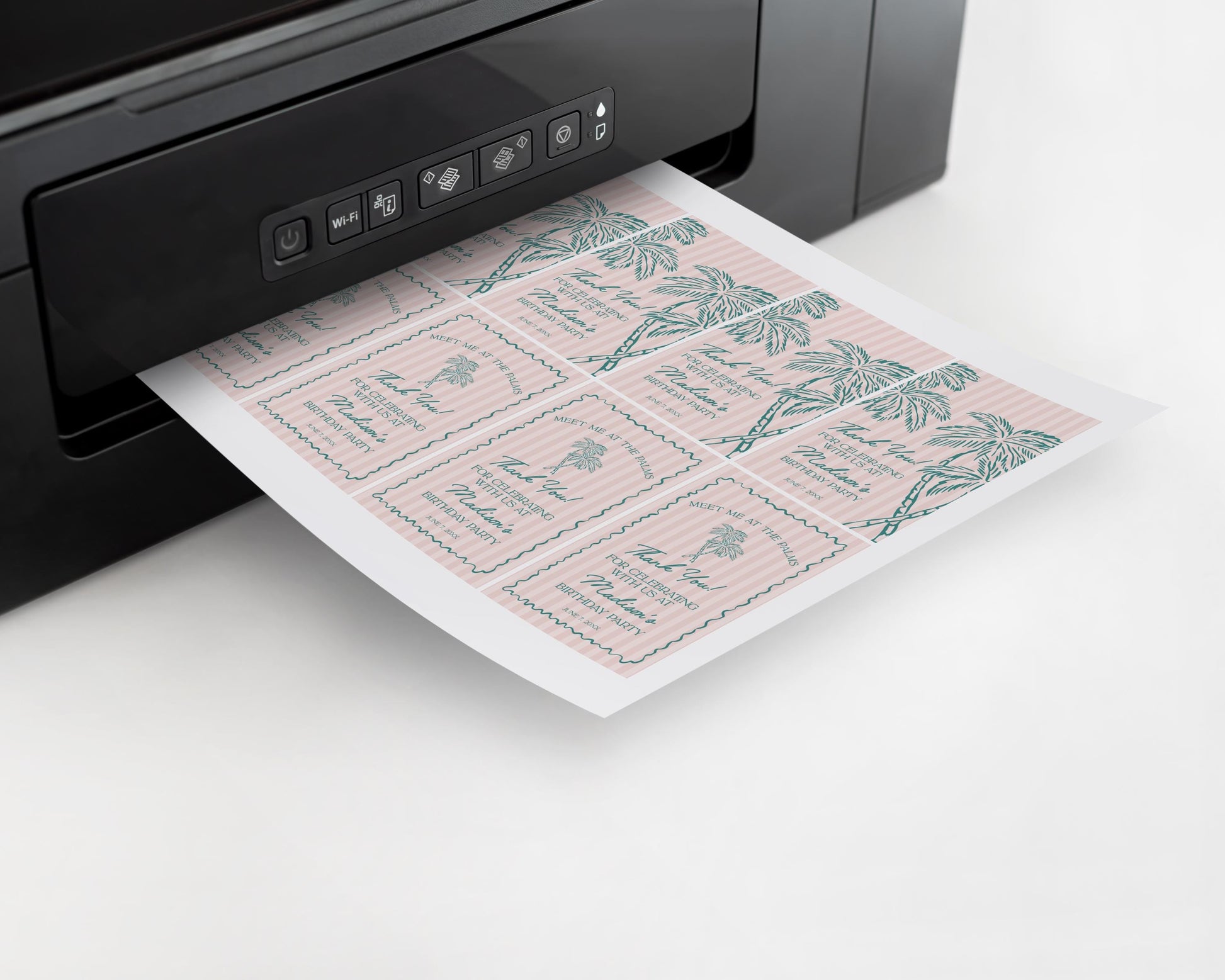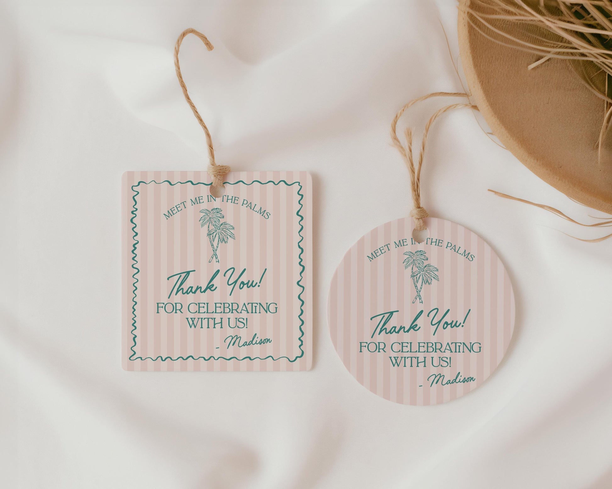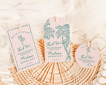 Pink Palm Springs Birthday Party Favor Tags Template, Vintage Palm Tree Beach Cabana Birthday Pool Party, Retro Tropical Pastel Party WP1046