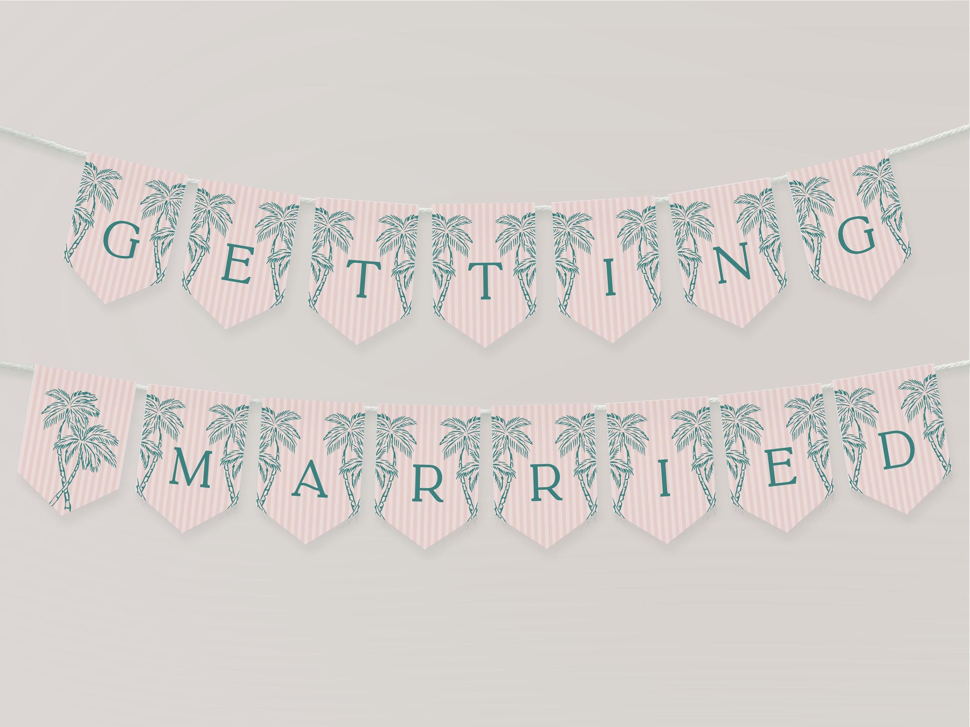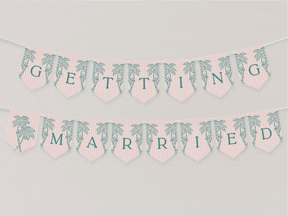 Pink Palm Springs Bridal Shower Banner Template, Vintage Palm Tree Beach Cabana Bridal Brunch, Retro Bachelorette Pastel Pool Party WP1046