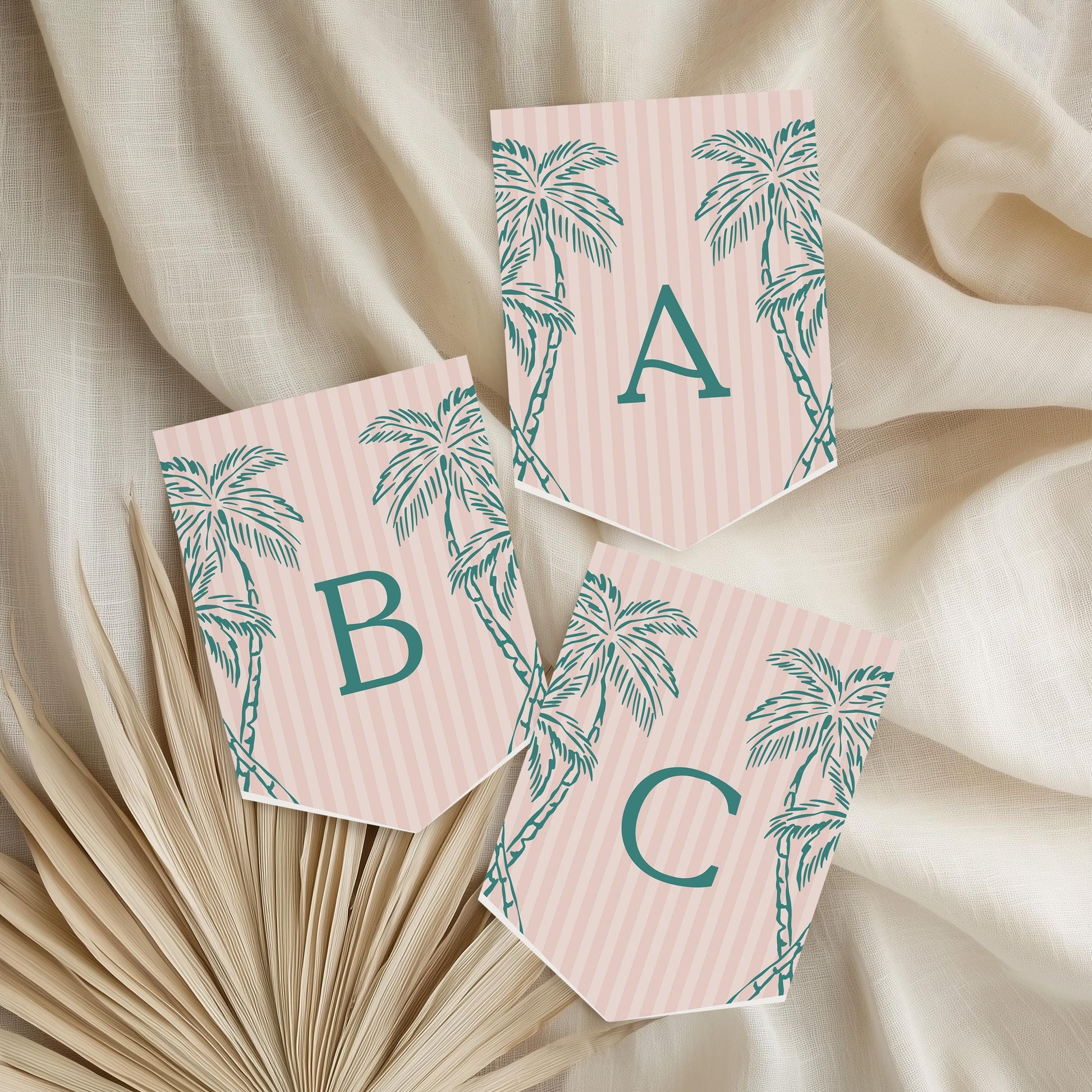Pink Palm Springs Table Number Cards Template, Vintage Palm Tree Beach Cabana Birthday Pool Party, Tropical Pastel Bachelorette Theme WP1046