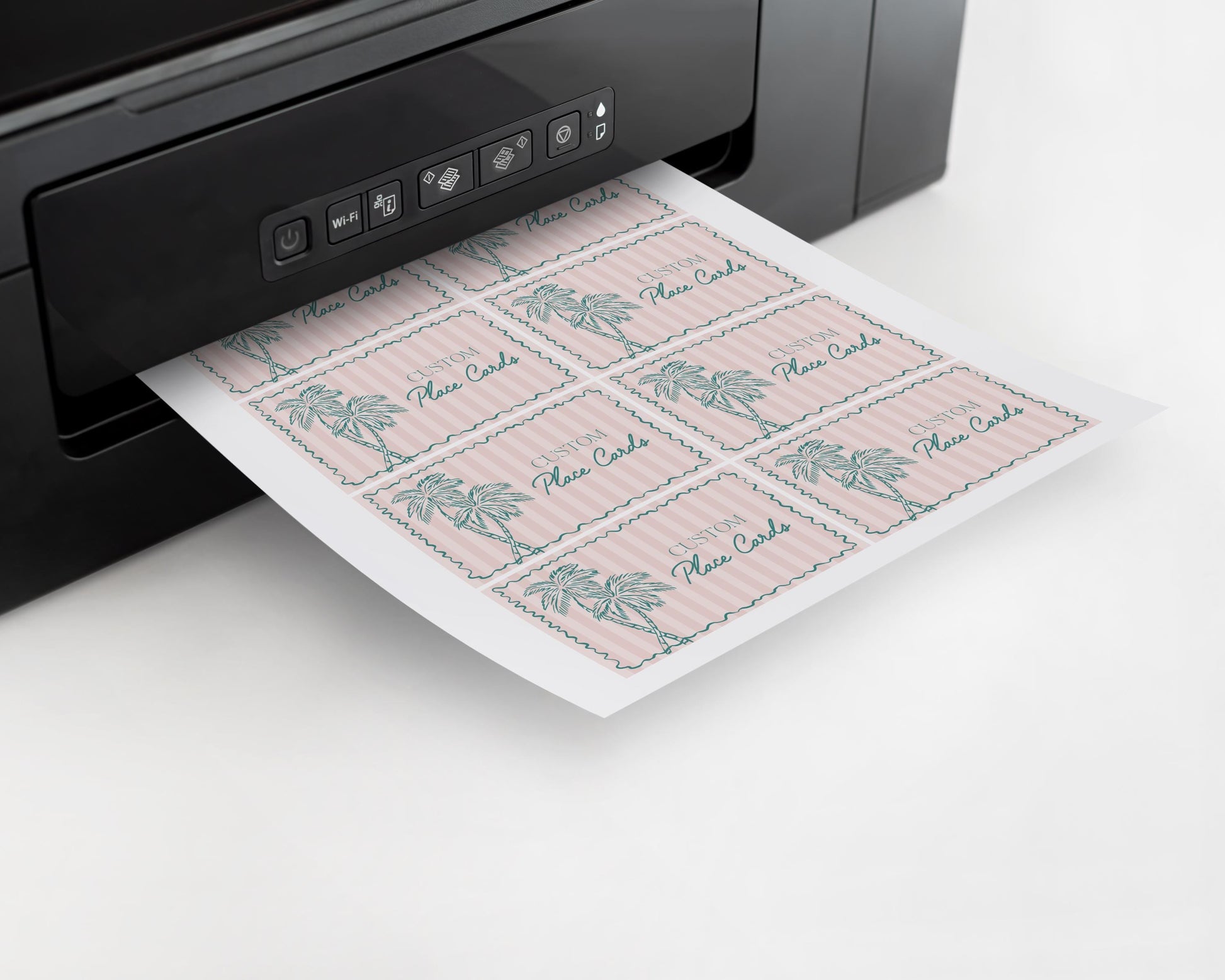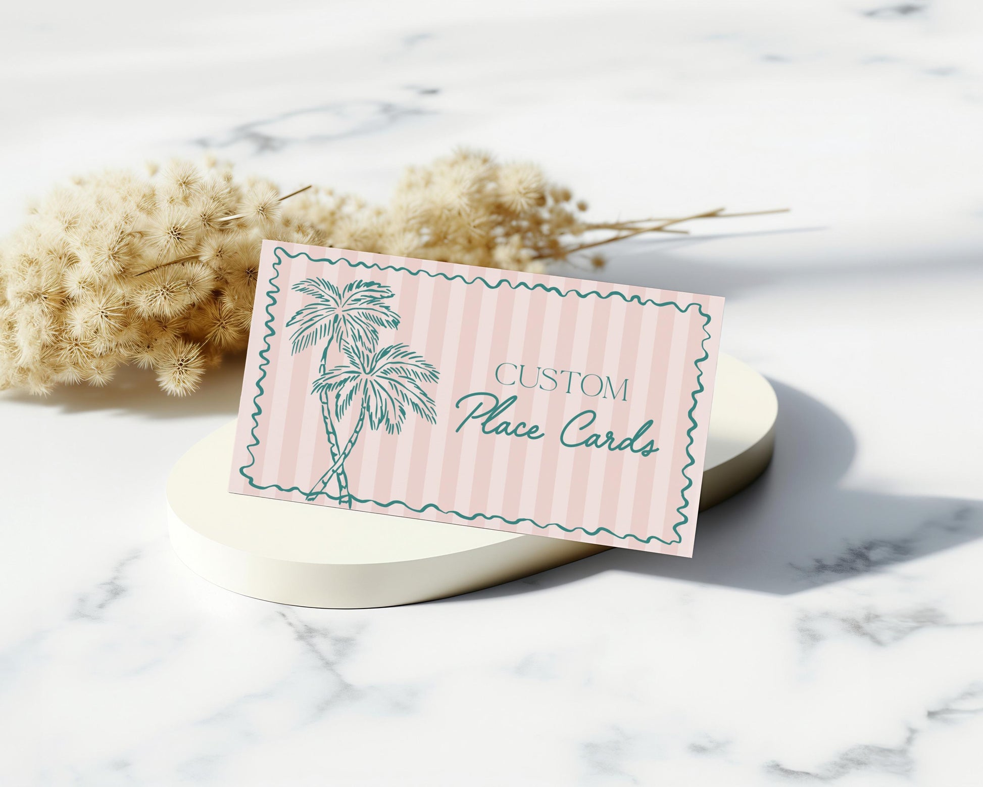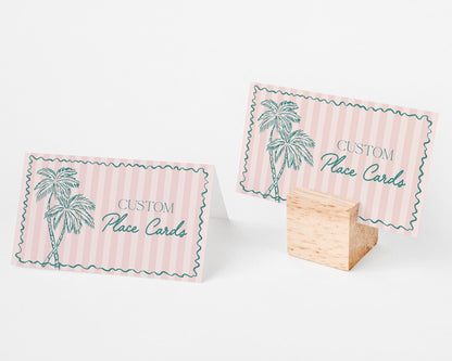 Pink Palm Springs Place Cards Template, Vintage Palm Tree Beach Cabana Birthday Pool Party, Tropical Pastel Bachelorette Bridal WP1046