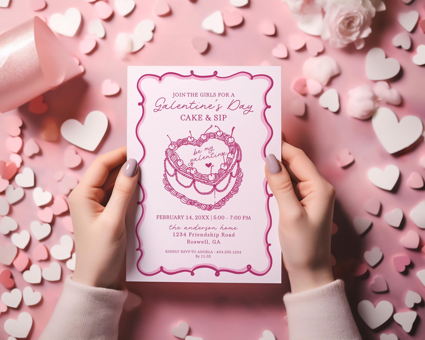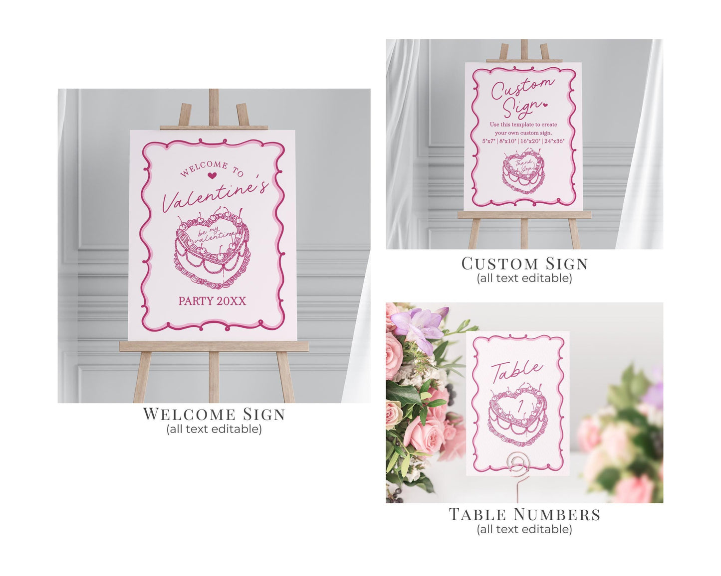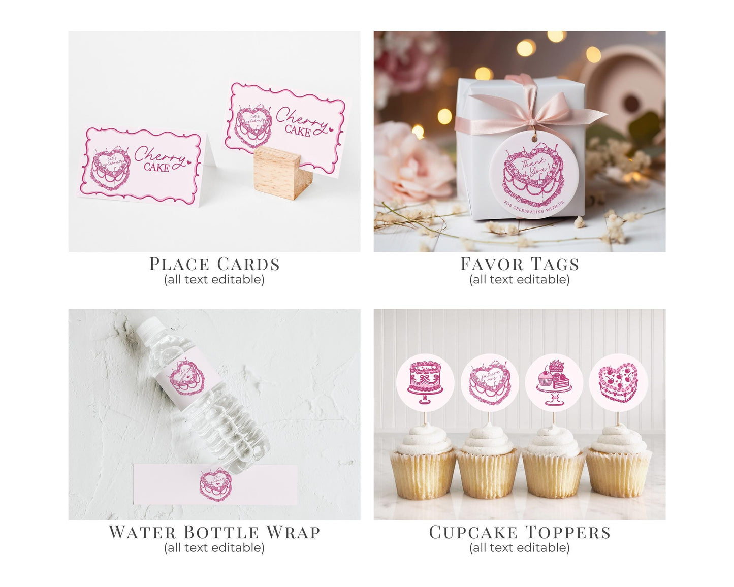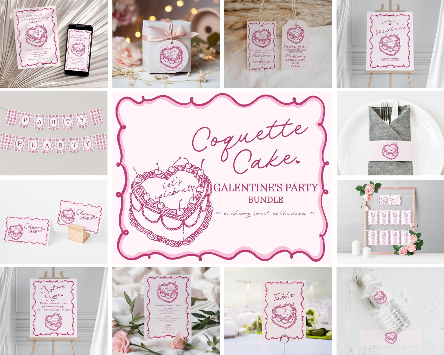 Pink Retro Coquette Heart Cake Galentines Party Bundle Printable Template