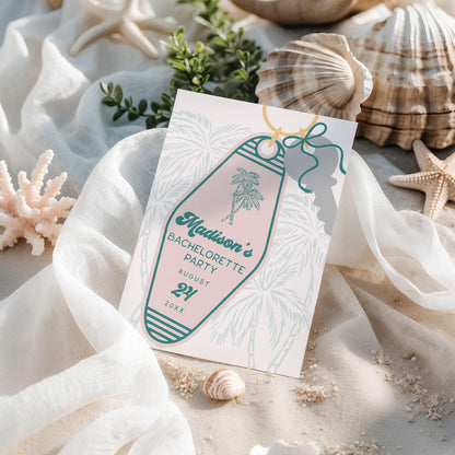 Pink Retro Resort Key Bachelorette Party Invitation Template