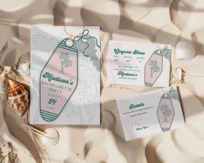 Meet me in the palms! This Retro Resort Beach Party Collection is a dreamy blend of vintage beach cabana charm and pastel perfection. Featuring a vintage motel keychain, breezy palm trees, and a touch of retro glam, this collection brings the magic of a sun-soaked getaway to your celebration. Whether you're hosting a bachelorette bash, bridal shower, or birthday soirée, these chic retro will transport your guests straight to a stylish mid-century oasis.