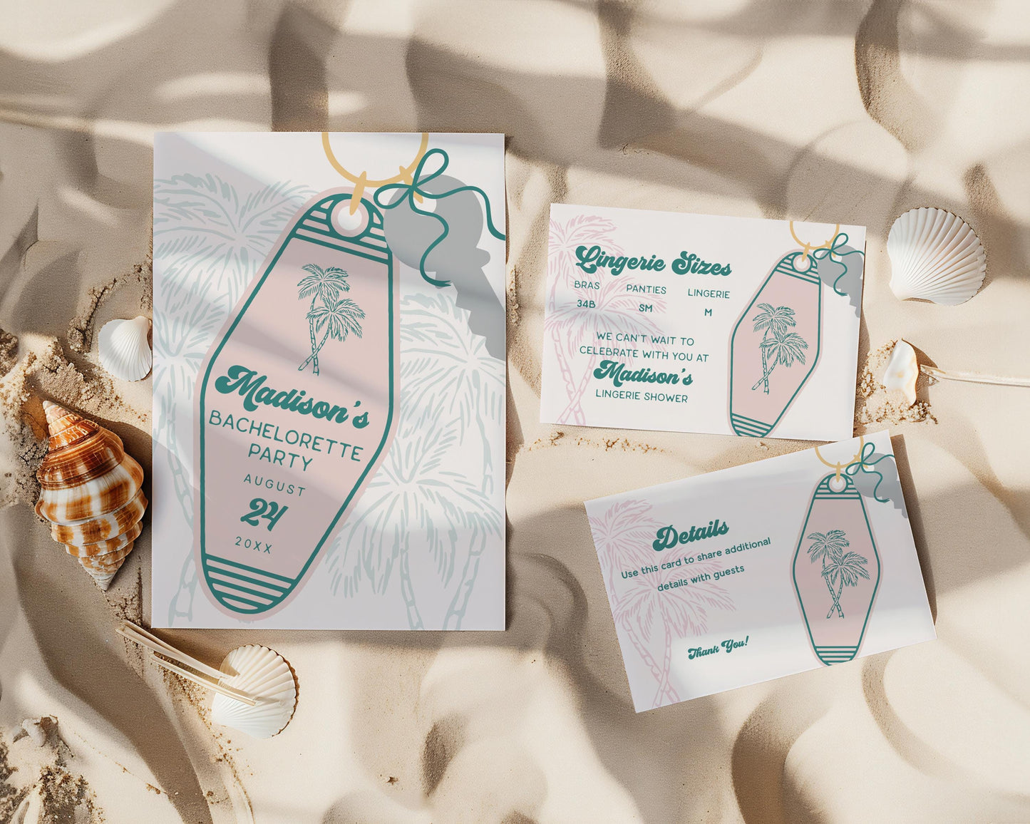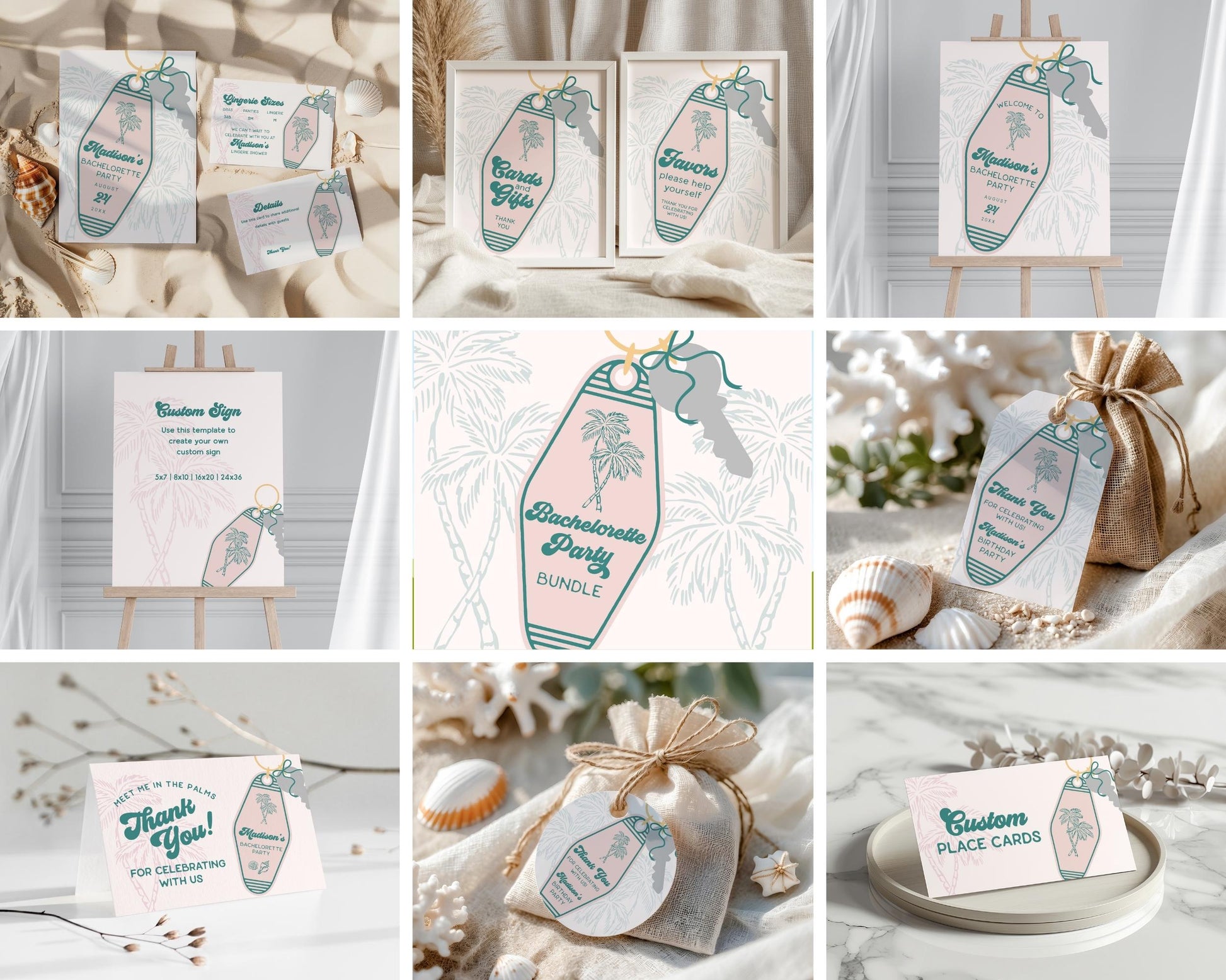 Pink Retro Resort Key Bachelorette Party Bundle Template