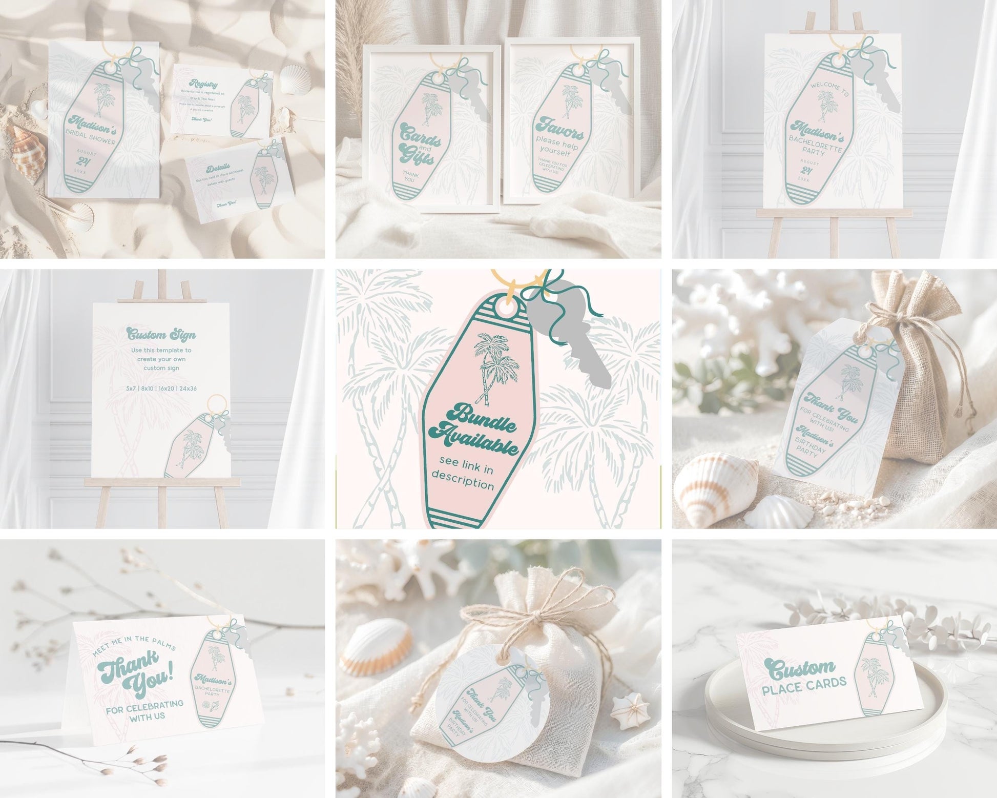 Pink Retro Resort Key Bridal Shower Bundle Template
