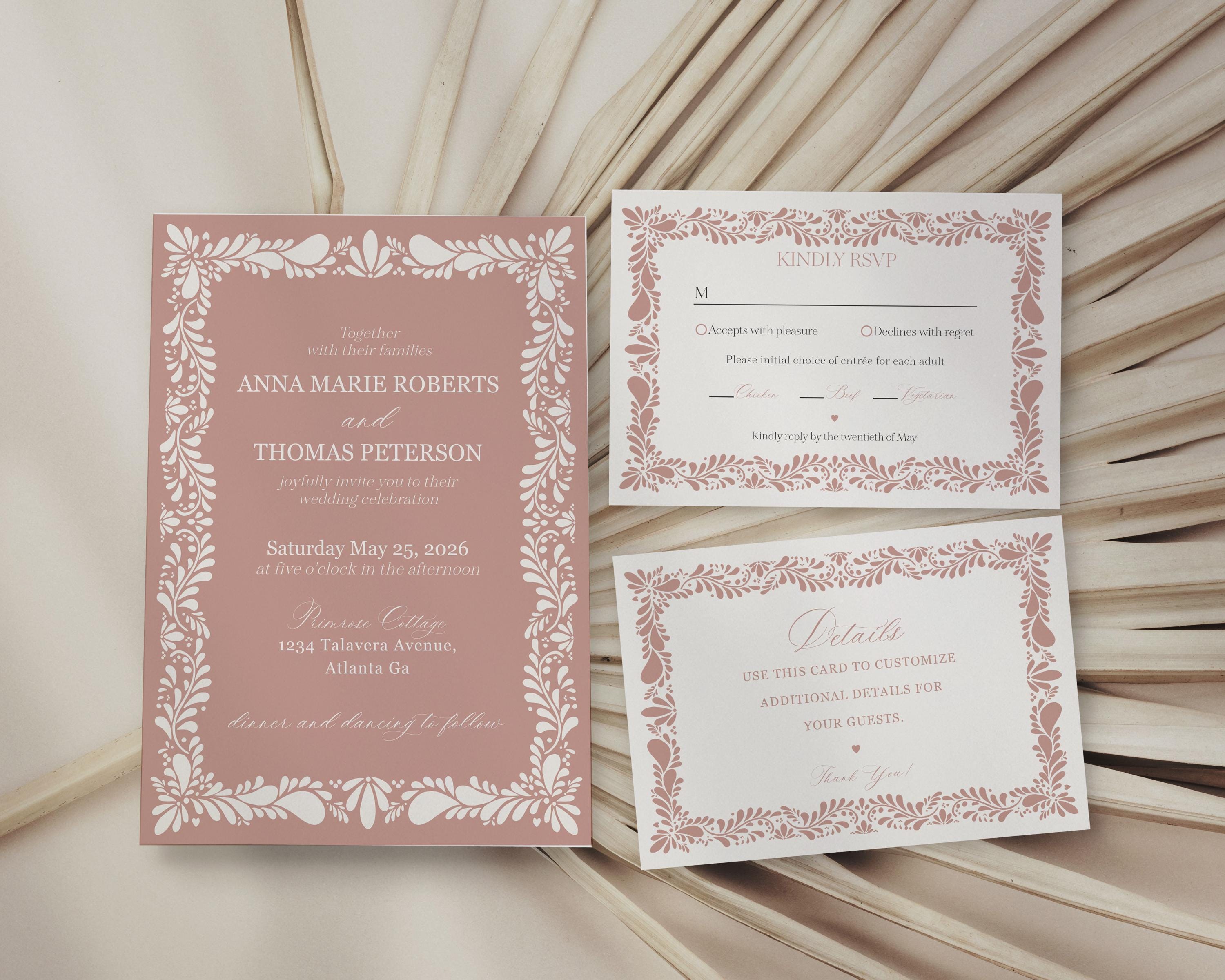 Pink Talavera Save the Date Printable Template, Spanish Tile Wedding Decor, Rose Papel Picado Bridal Brunch WP1017
