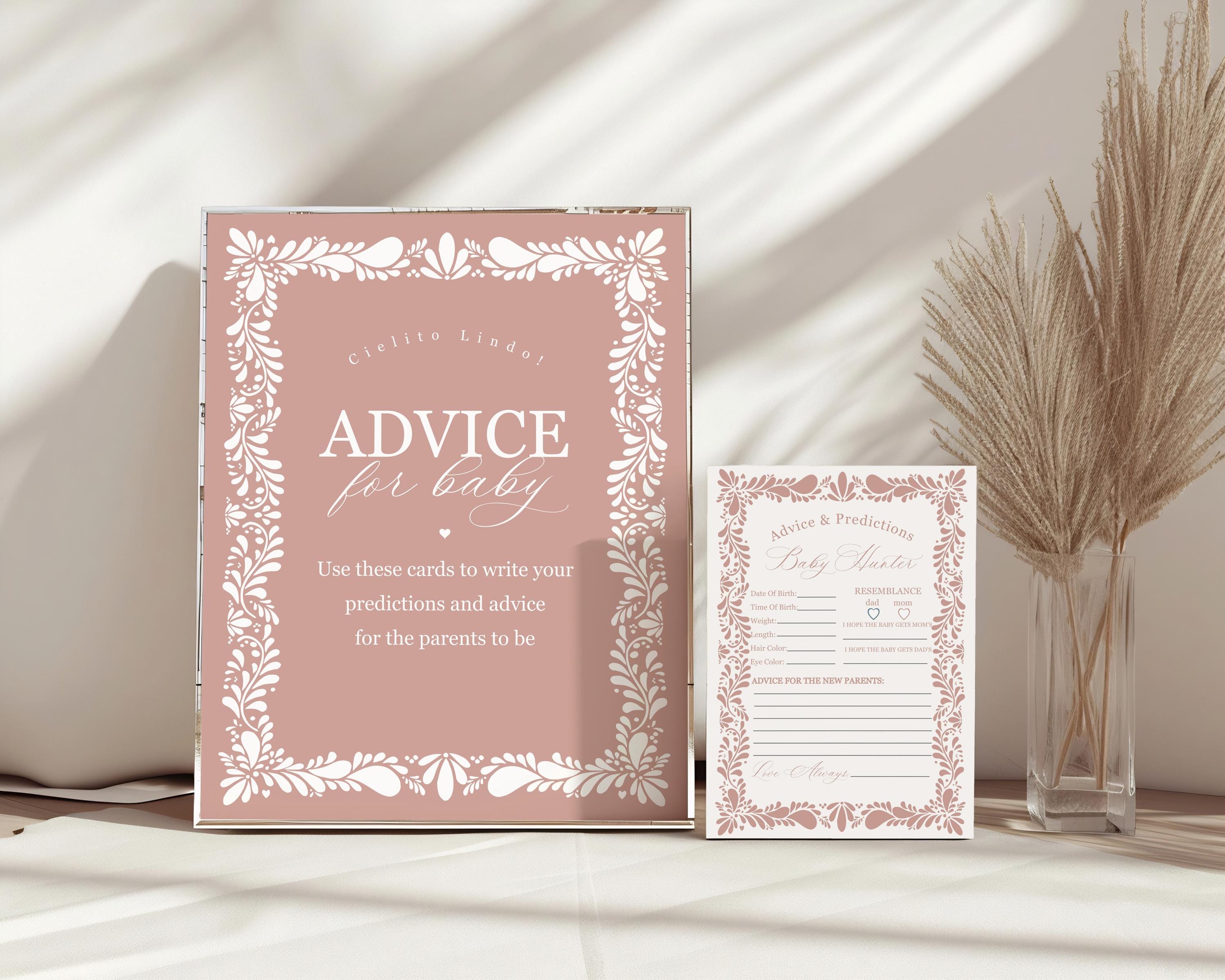 Pink Talavera Advice for Baby Cards Printable Template, Spanish Tile Mexican Baby Shower Fiesta Girl, Cielito Lindo Baby Sprinkle WP1017