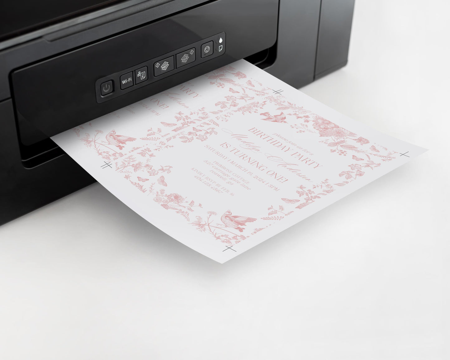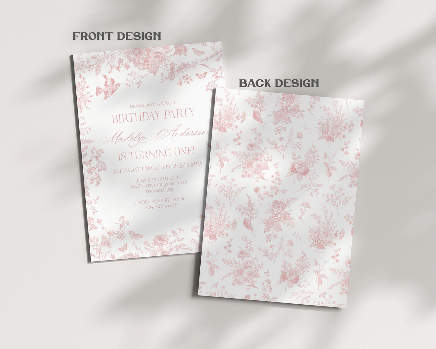 Pink Toile De Jouy Birthday Invitation Printable Template, Pink Wildflower Chinoiserie Birthday Party Girl, French Floral Party Decor WP1011