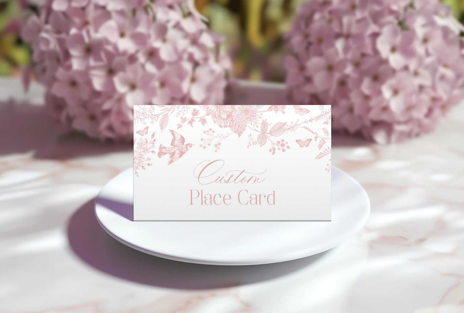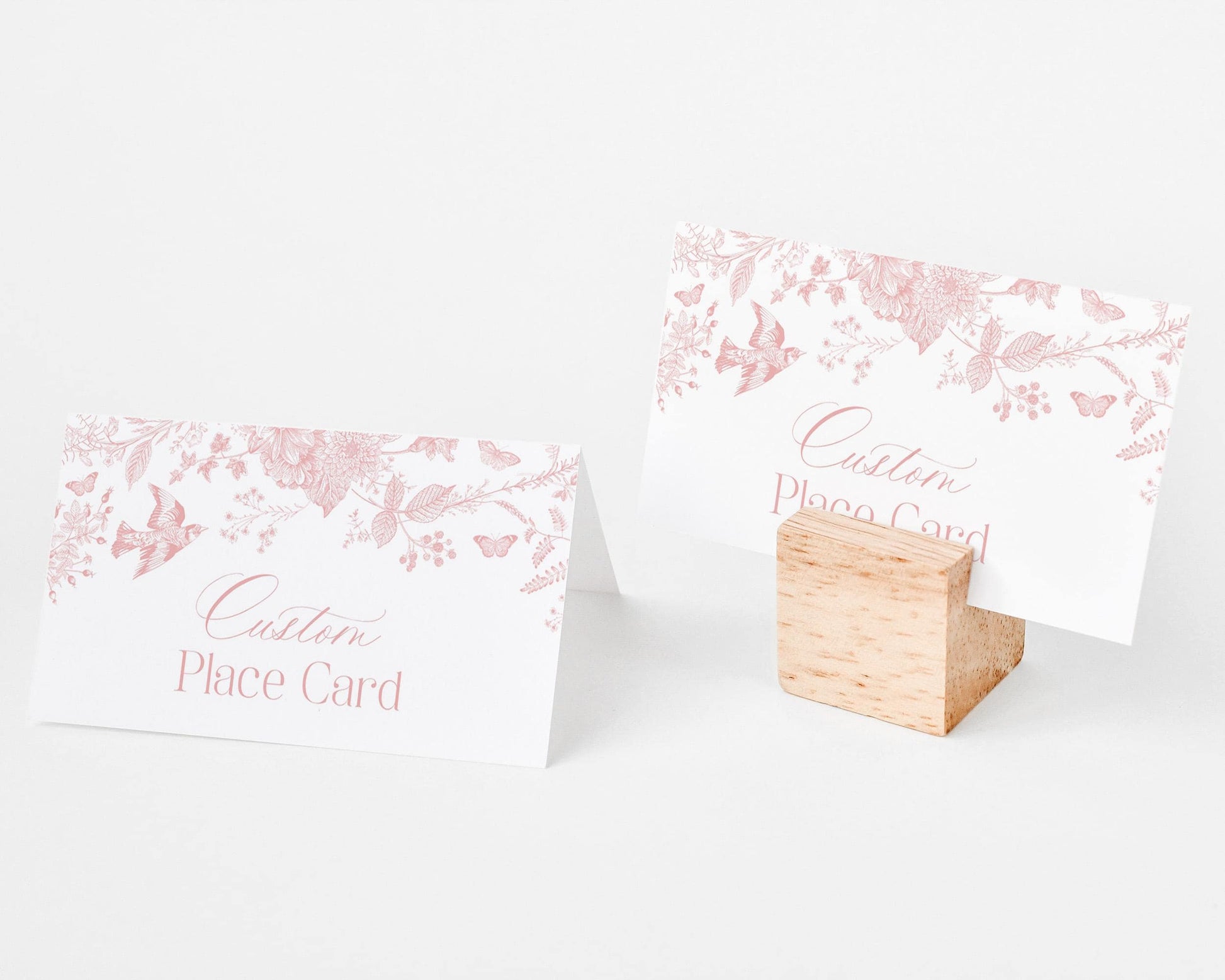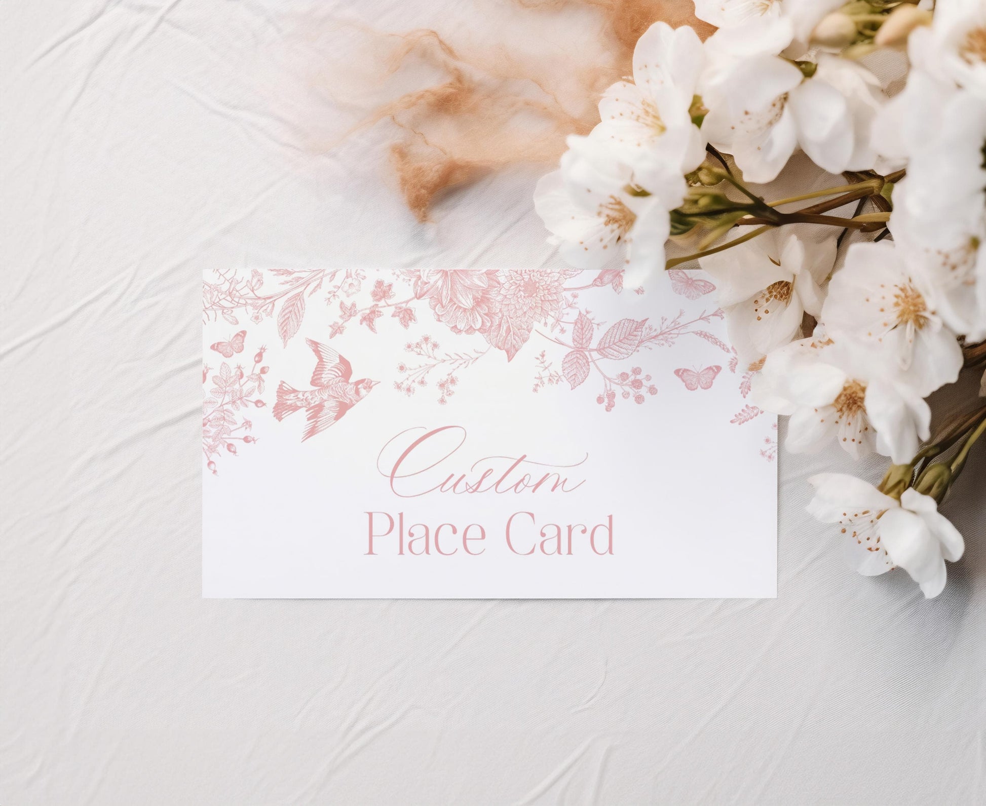 Pink Toile De Jouy Place Cards Printable Template, Wildflower Chinoiserie Bridal Brunch French Floral Wedding Decor Love is in Bloom WP1011