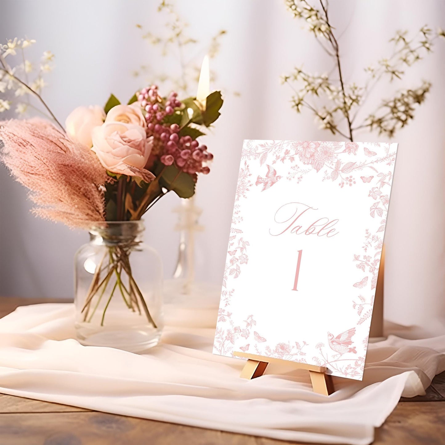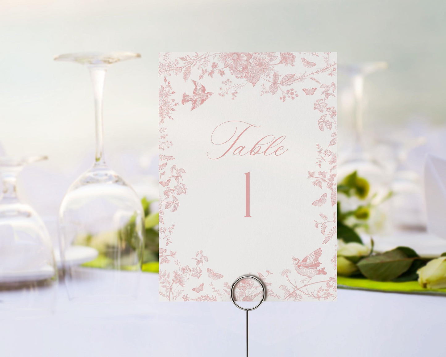 Pink Toile De Jouy Wedding Seating Chart Cards Printable Template