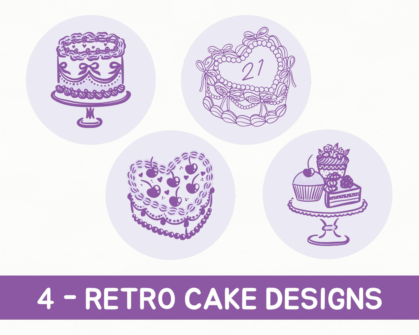 Purple Retro Heart Coquette Cake Birthday Bundle Template