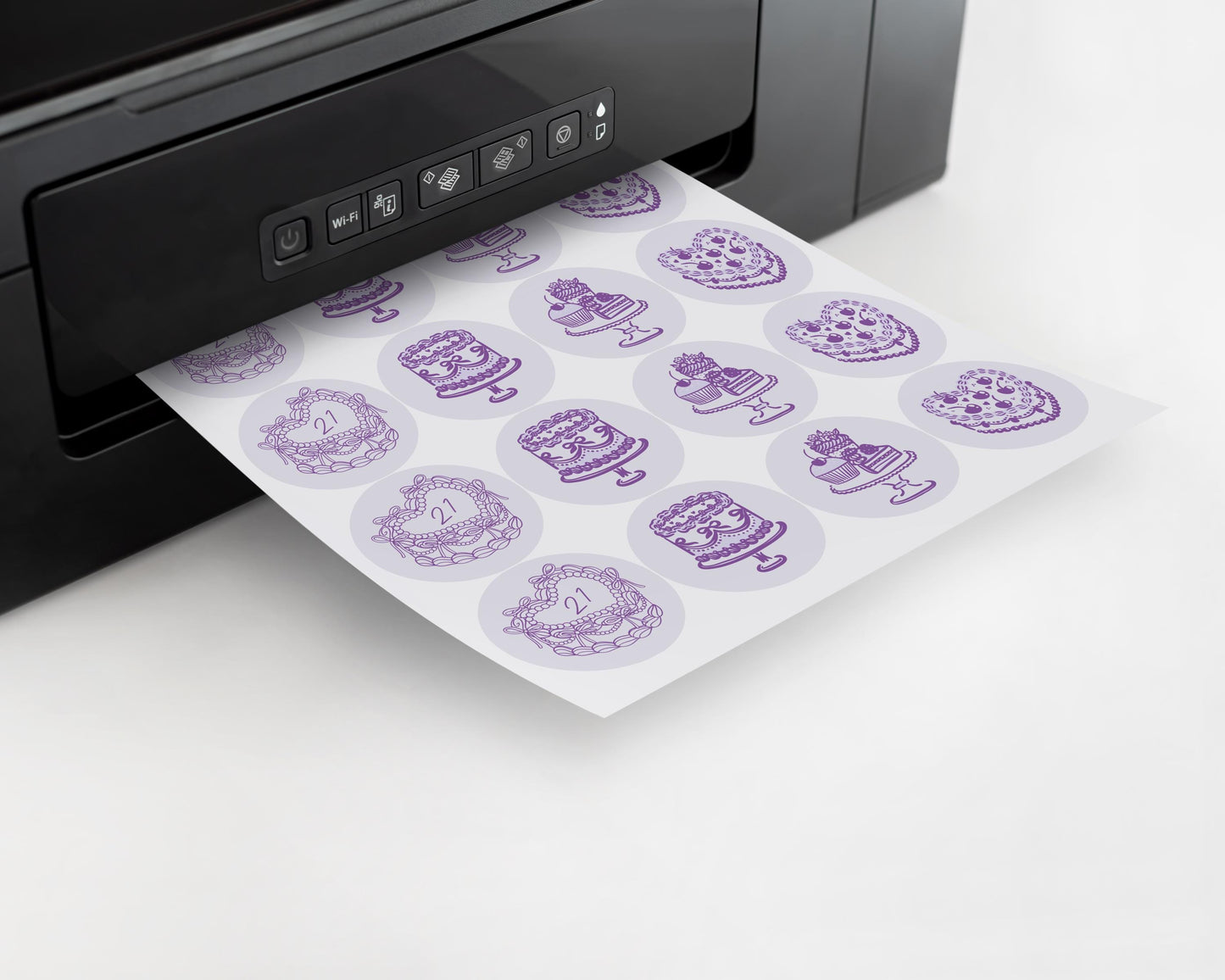 This listing includes an instant download PDF with 4 different designs. Size: 2"x2" circle perfect for cupcakes, tags, and other party decor