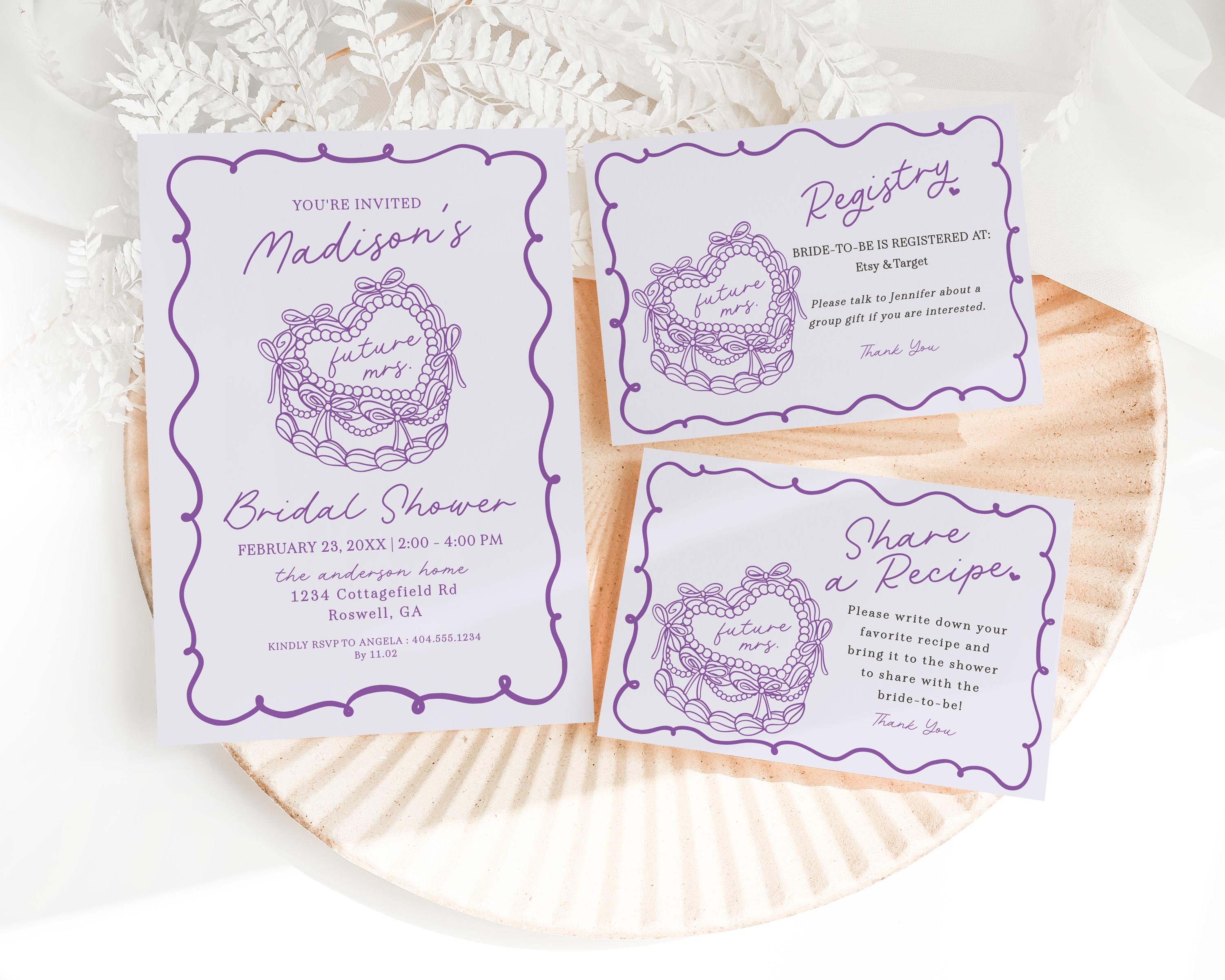 Purple Retro Coquette Heart Cake Bridal Shower Bundle Printable Template