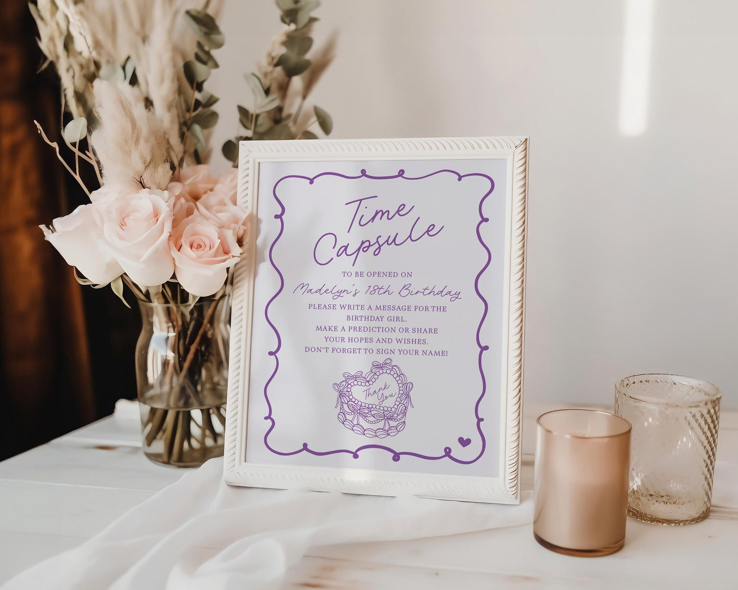 Purple Coquette Heart Cake Time Capsule Printable Template