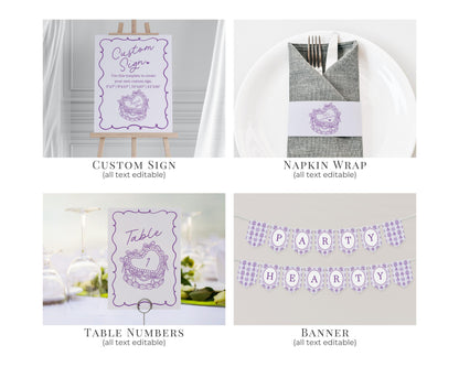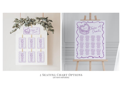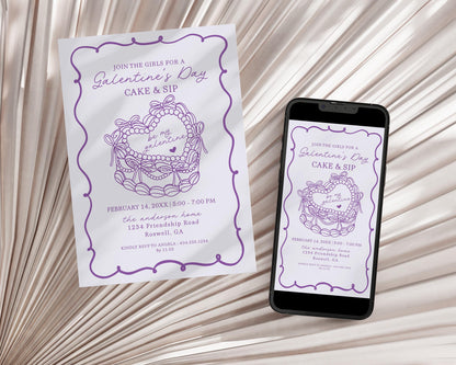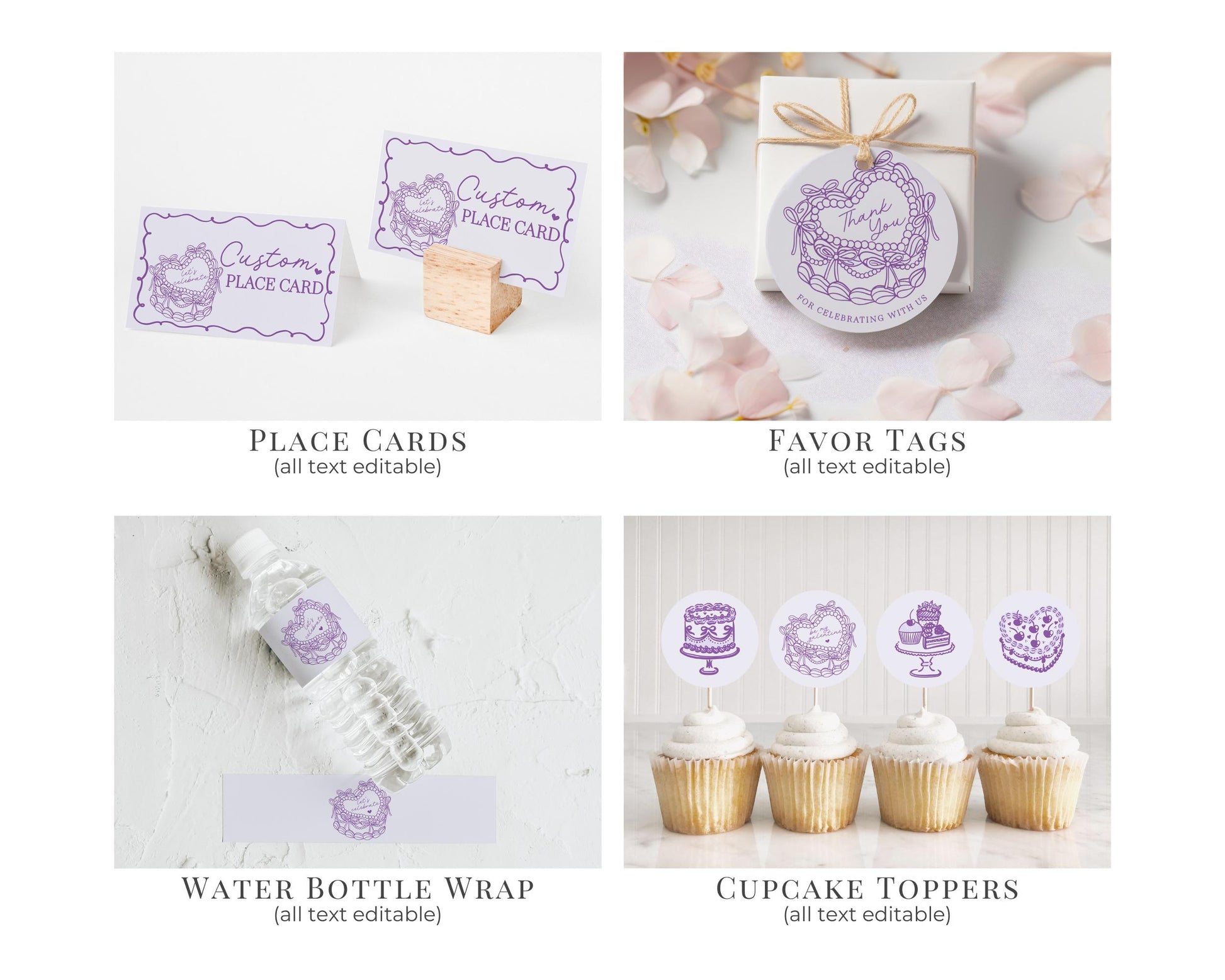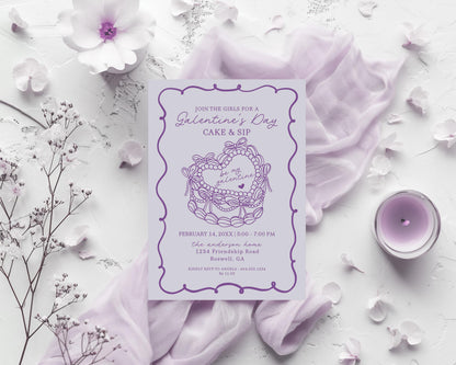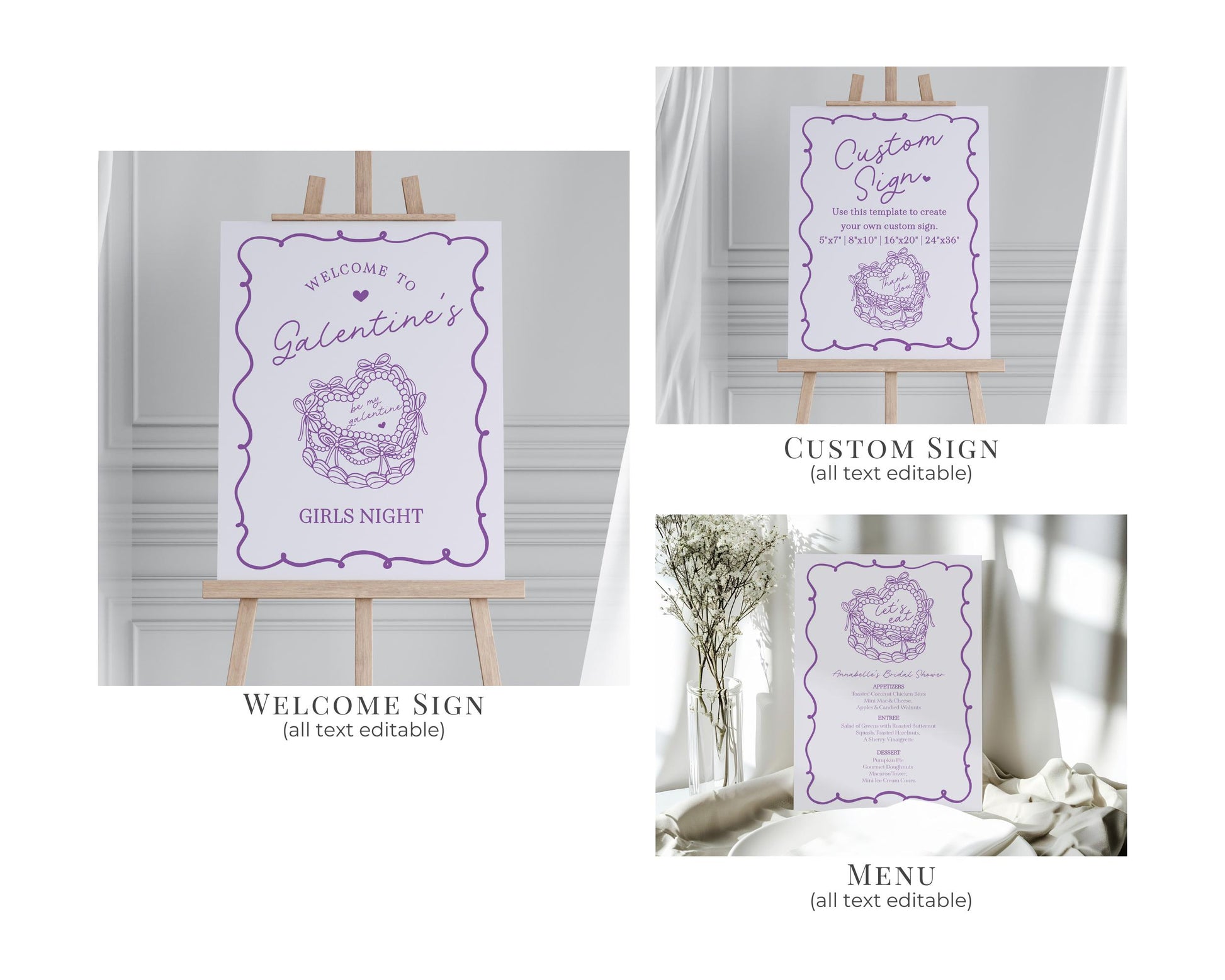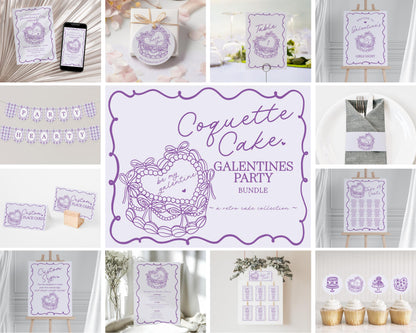 Purple Retro Coquette Heart Cake Galentines Bundle Template