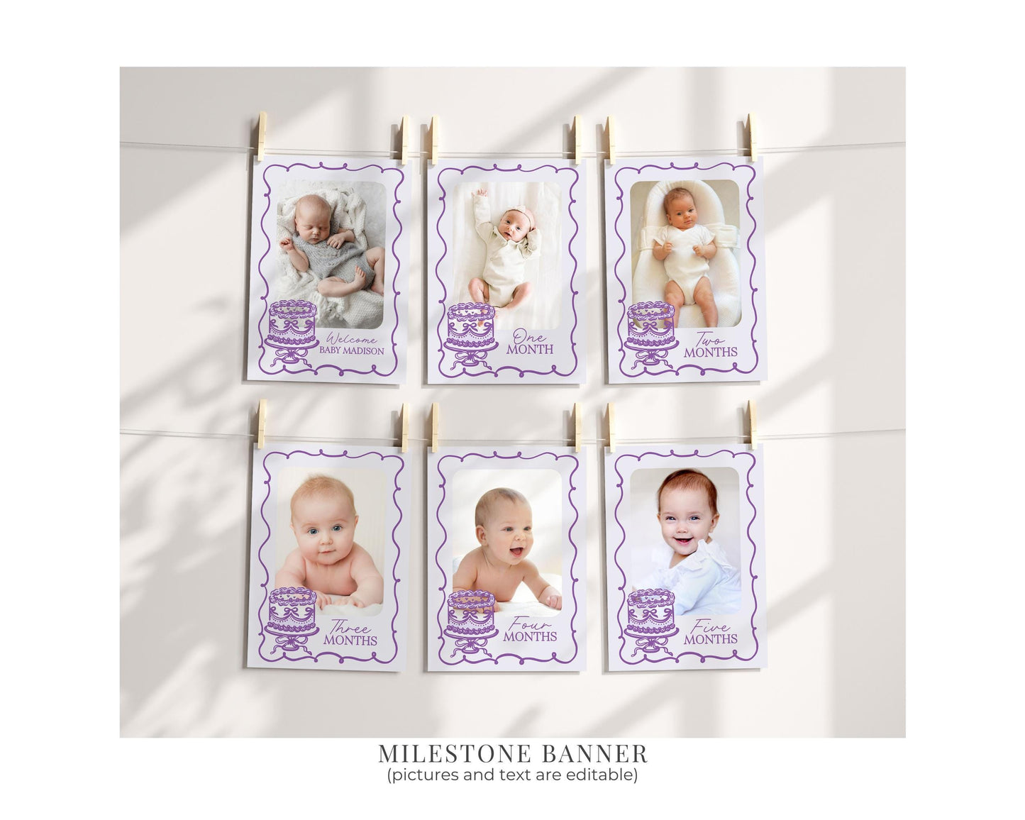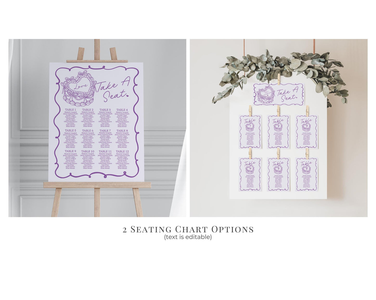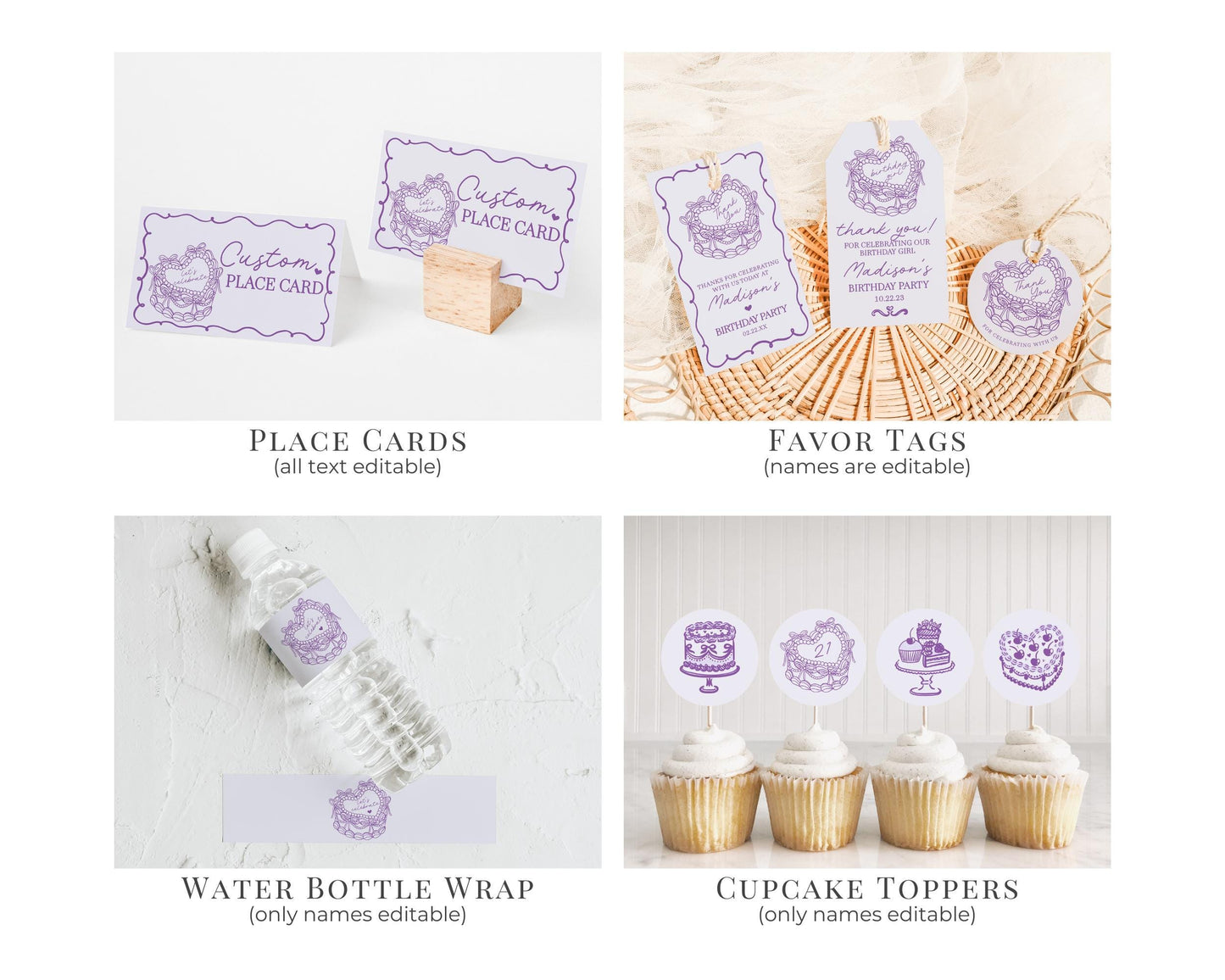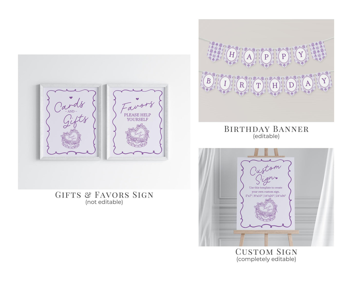 Purple Retro Heart Coquette Cake First Birthday Bundle Printable Template