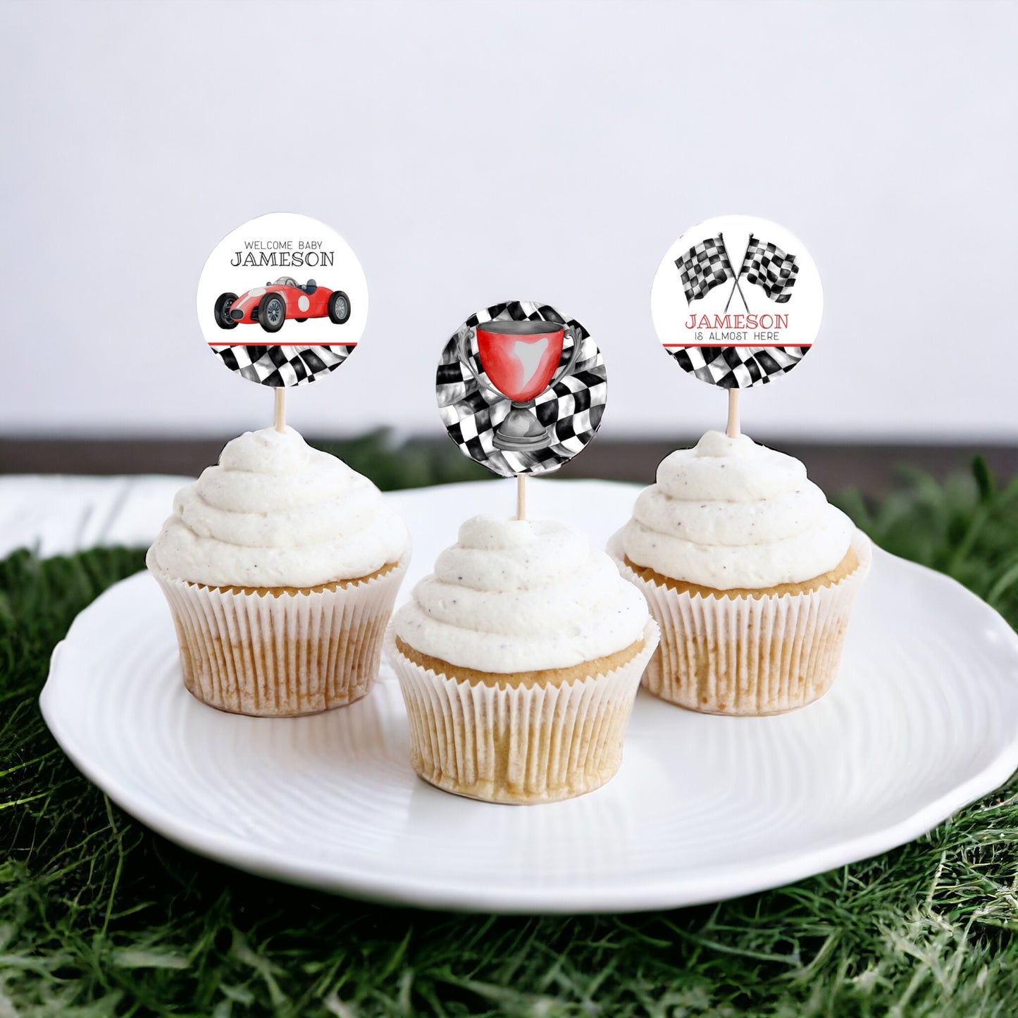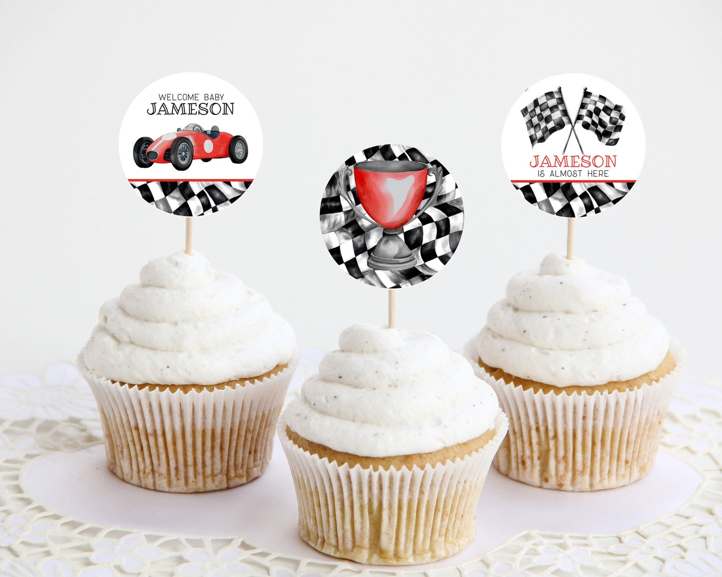 Red Race Car Baby Shower Cupcake Toppers Printable Template