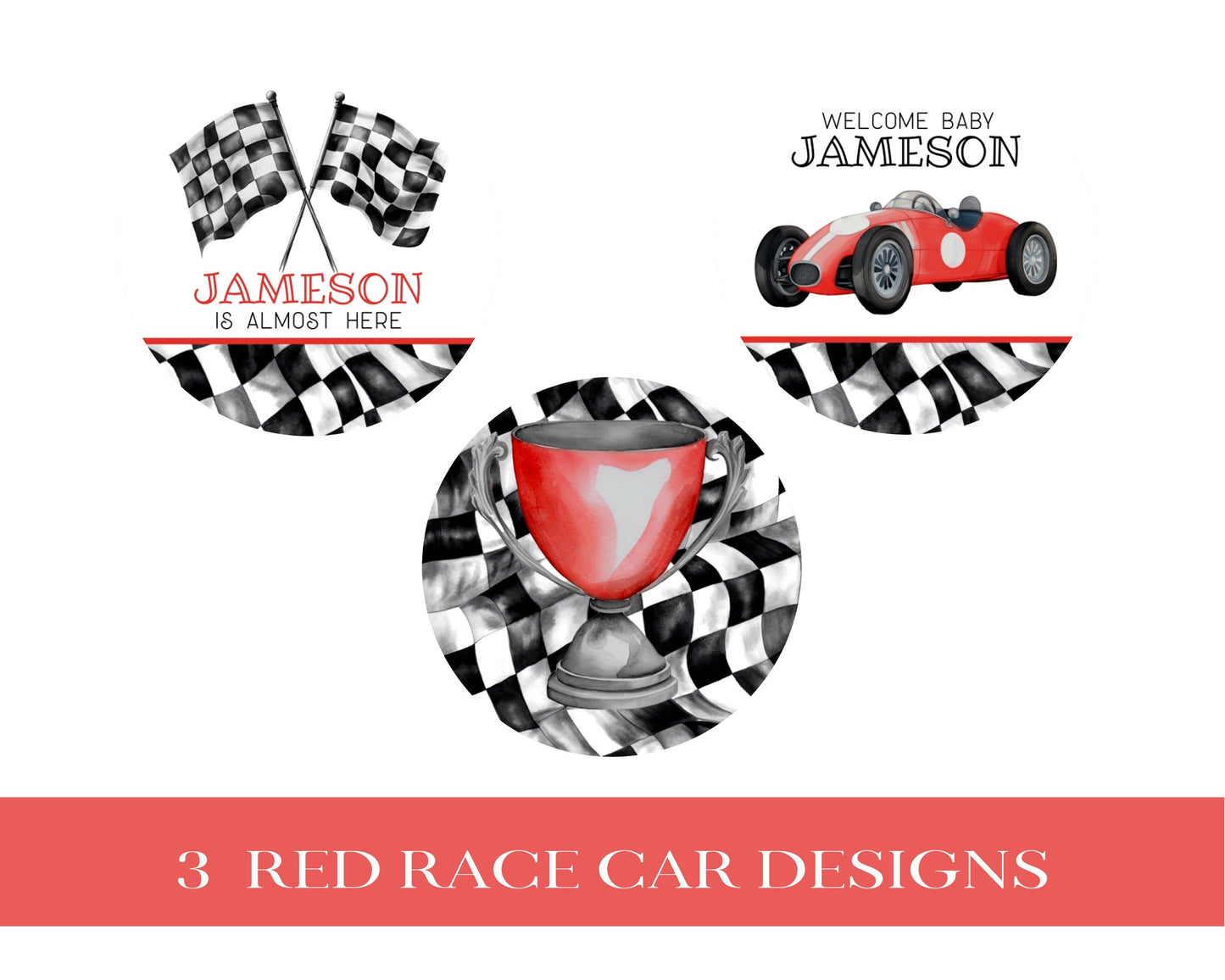 Red Race Car Baby Shower Bundle Template, digital files for baby shower for boy, printable retro vintage race car party decor, race on over