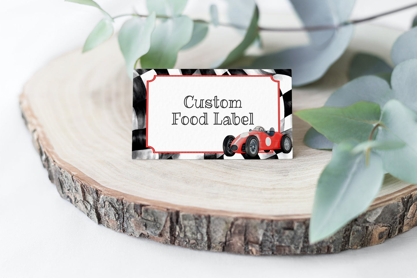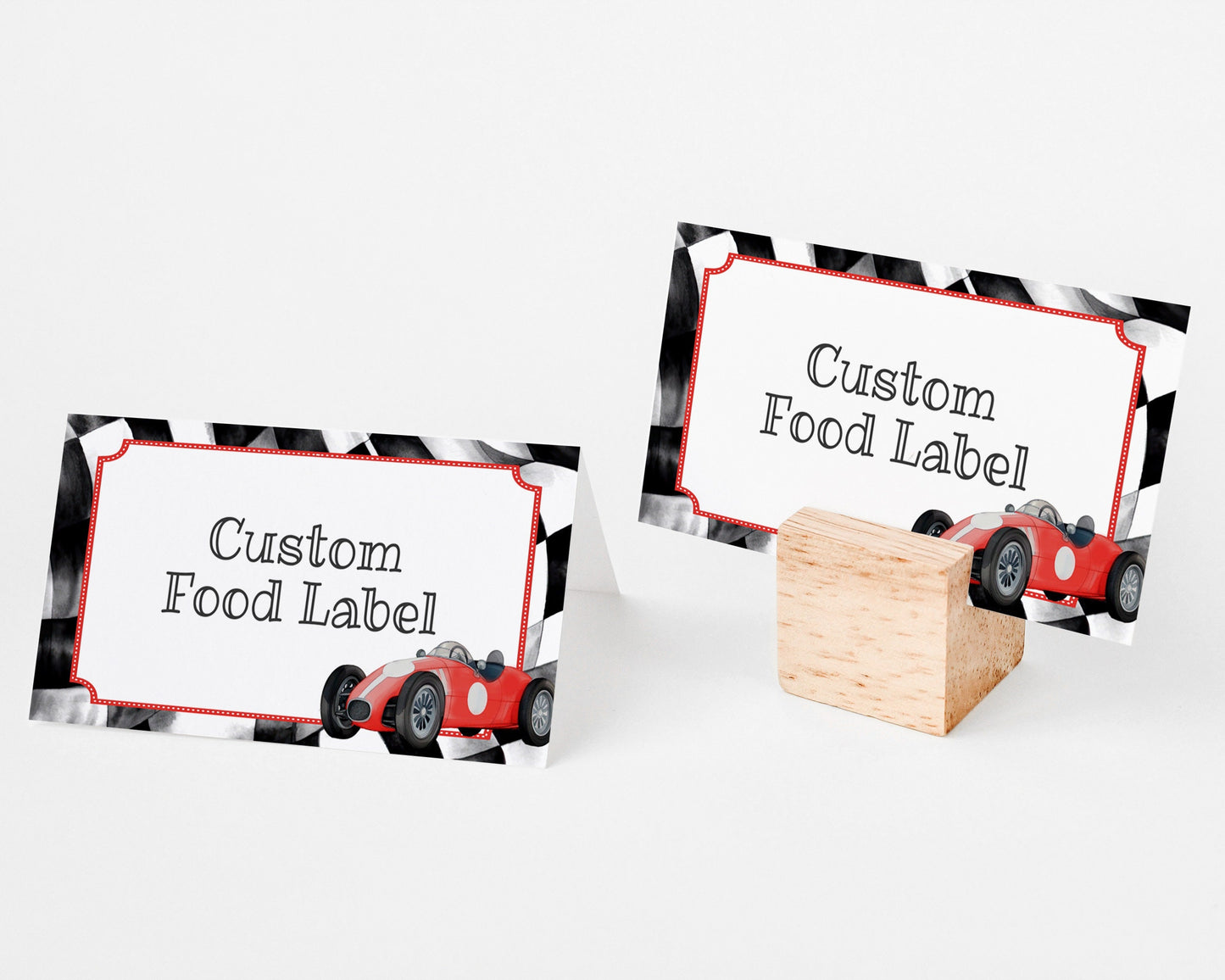 Red Race Car Place Cards Instant Download, race car Baby Shower or boy Birthday Party, our little racer is growing up two fast, fast one