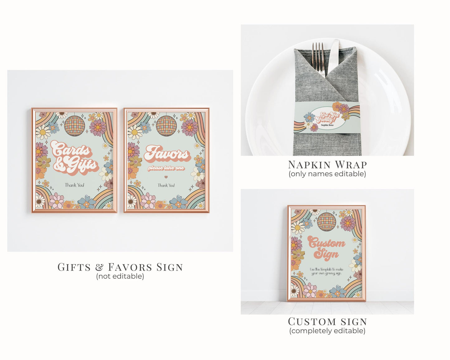 Six-ties Spirit! Celebrate your little girl's 6th birthday in style with this retro, 70s printable party collection! This fun and funky design features groovy florals and a vibrant color palette inspired by the iconic decade of peace, love, and happiness.