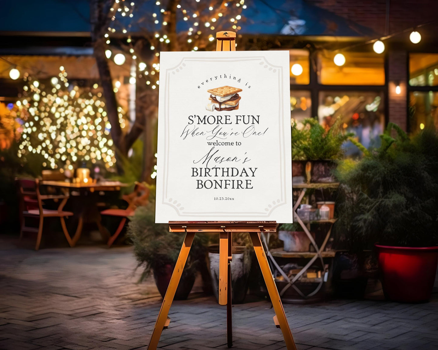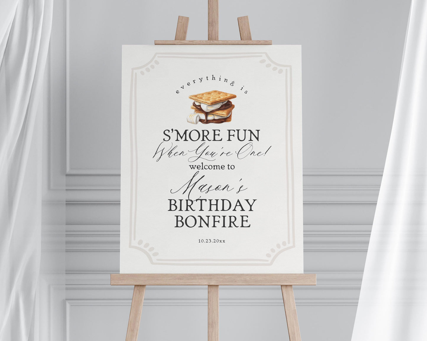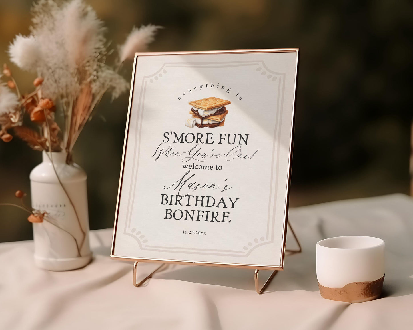 S'more Fall Bonfire Birthday Welcome Sign Printable Template, Smore Birthday Party Decor for Gender Neutral Backyard Birthday Firepit WP1012