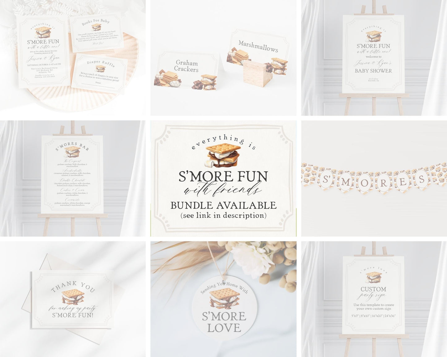 S'more Fall Bonfire Baby Shower Bundle Printable Template, Smore to Love Baby Sprinkle for Gender Neutral Backyard Baby Shower WP1012