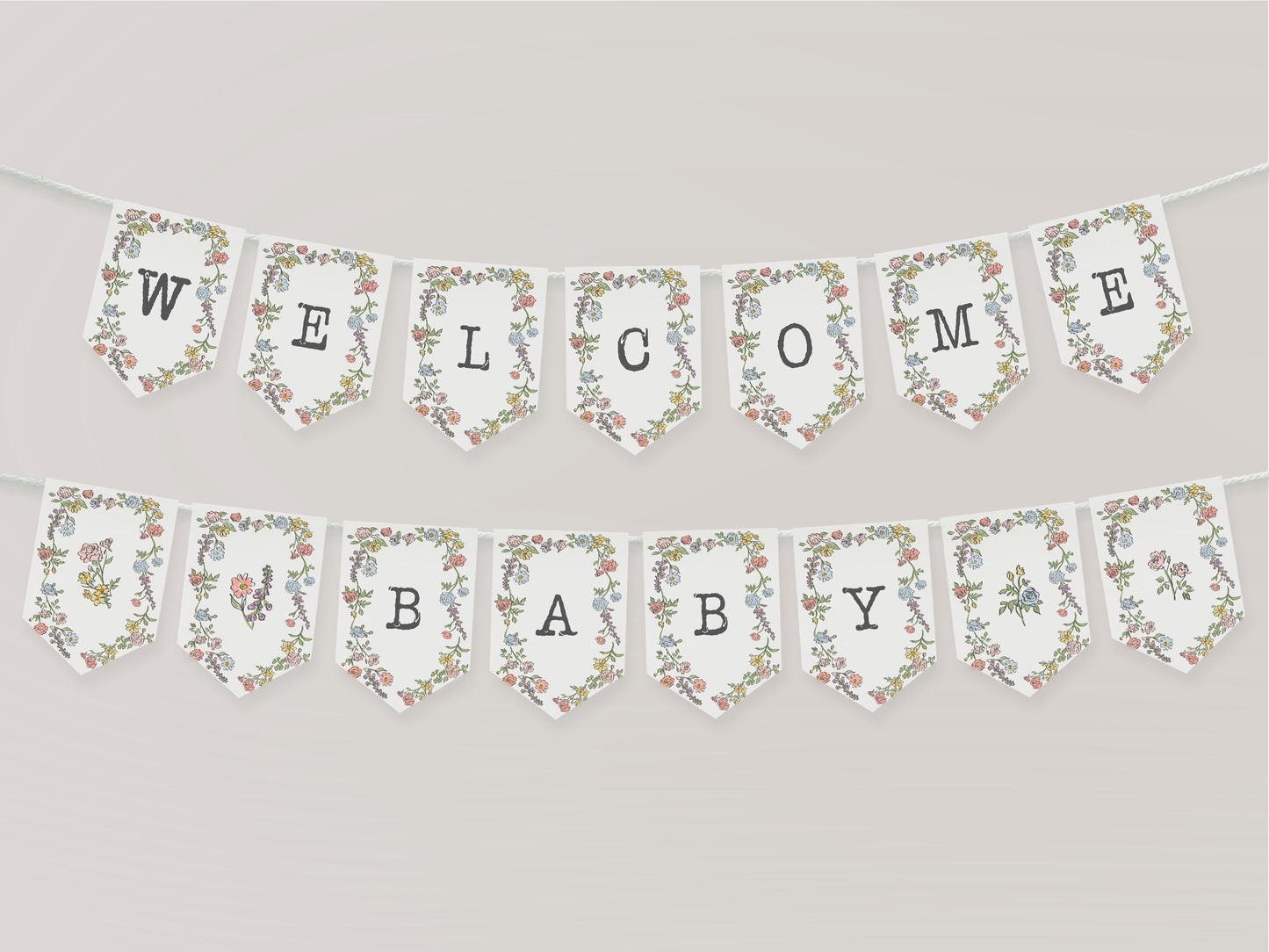 Spring Garden Party Baby Shower Banner Template, Pastel Floral Baby in Bloom Baby Sprinkle Girl, Coquette Summer Wildflower Bouquet WP1057