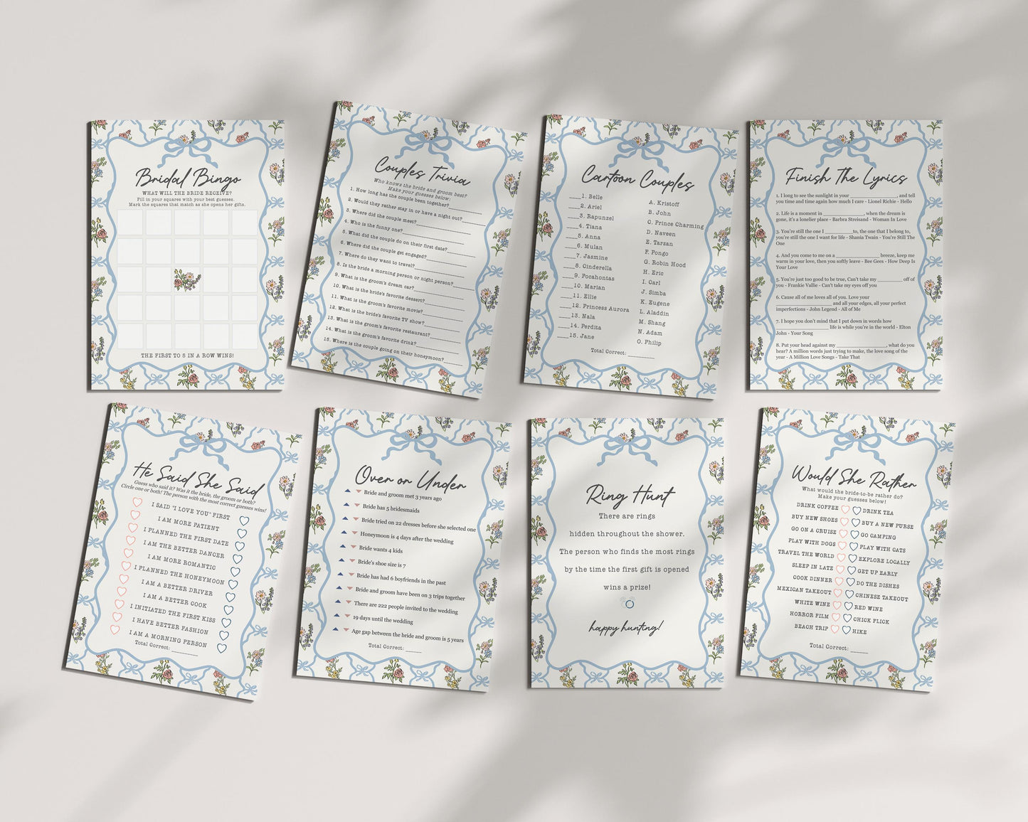 Spring Garden Party Baby Shower Games Set Template, Pastel Floral Baby in Bloom Baby Sprinkle, Coquette Summer Wildflower Bouquet WP1057