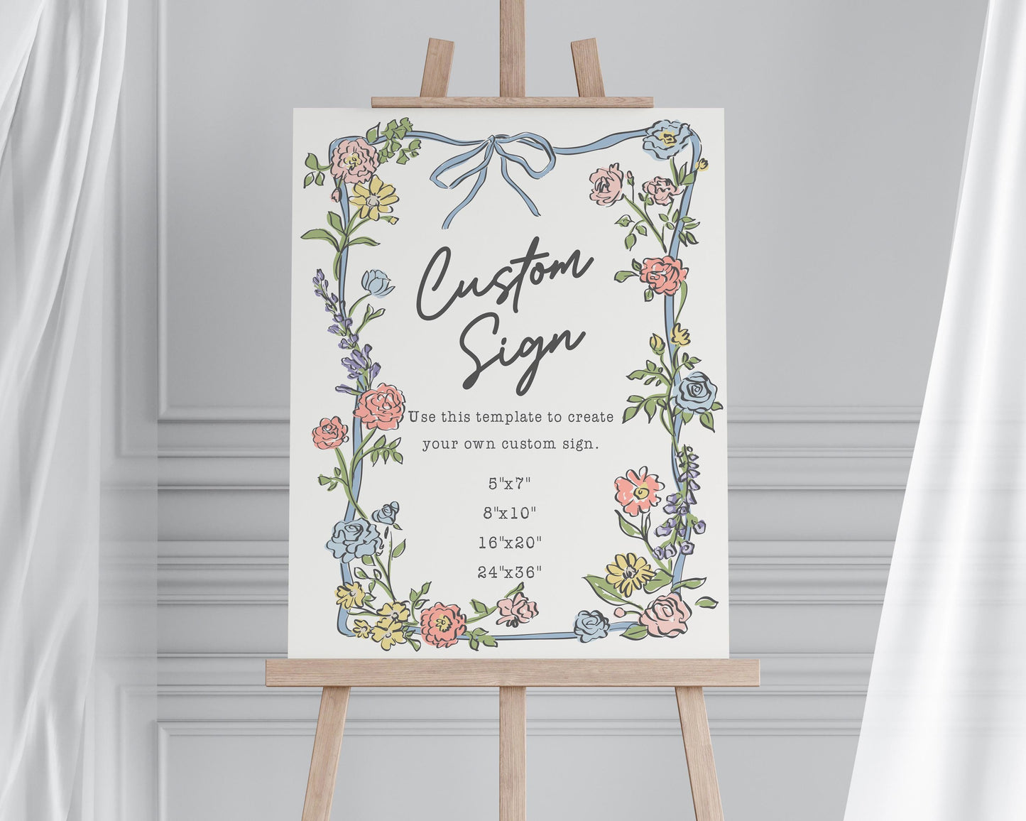 Spring Garden Party Cards & Gifts and Favors Sign Template, Pastel Floral Baby Shower Wildflower Bridal Shower Summer Bouquet Wedding WP1057