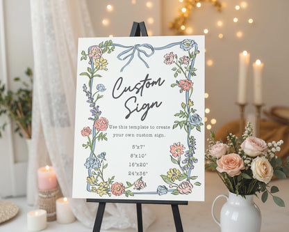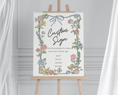 Spring Garden Party Custom Sign, Pastel Floral Baby Shower for Girl, Wildflower Bridal Shower for Summer Bouquet Wedding Decor WP1057