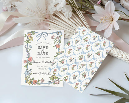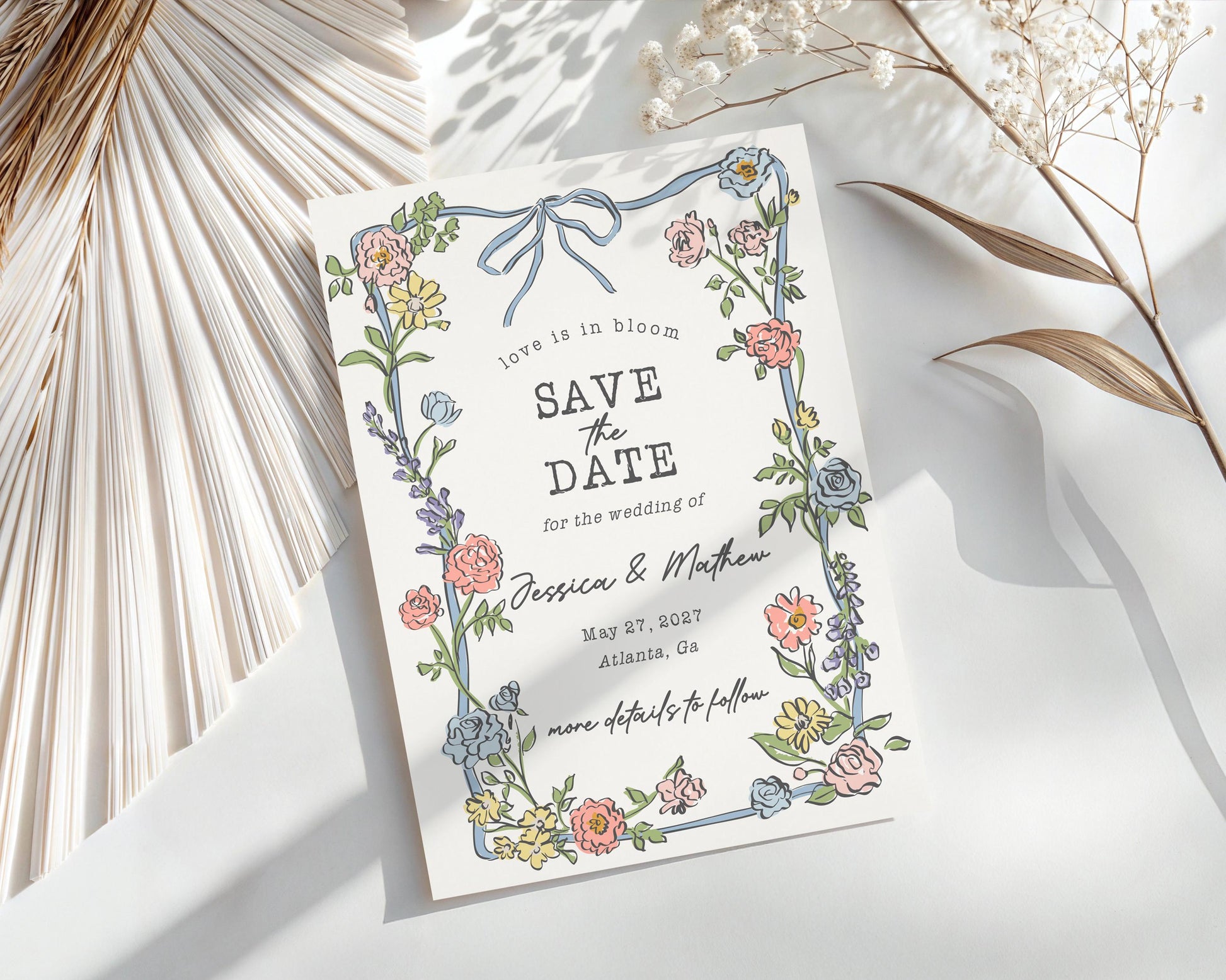 Spring Garden Party Save the Date Template, Pastel Floral Love is in Bloom Wedding Coquette Summer Wildflower Engagement Announcement WP1057