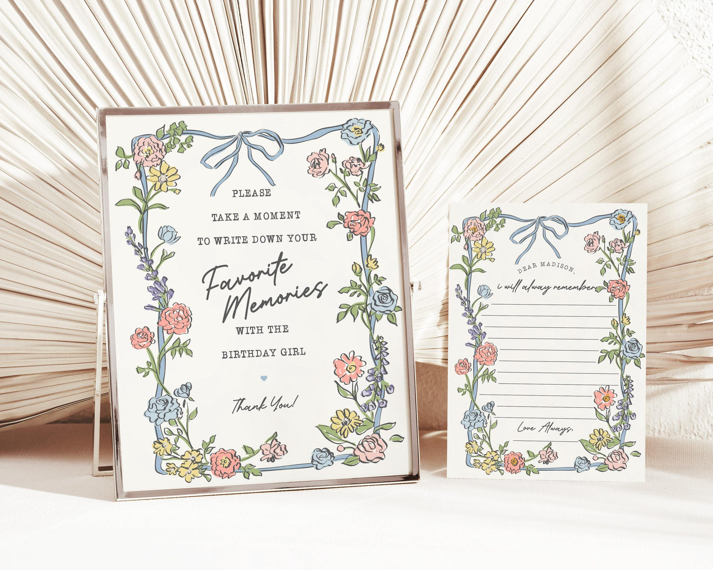 Spring Garden Party Cards & Gifts and Favors Sign Template, Pastel Floral Baby Shower Wildflower Bridal Shower Summer Bouquet Wedding WP1057