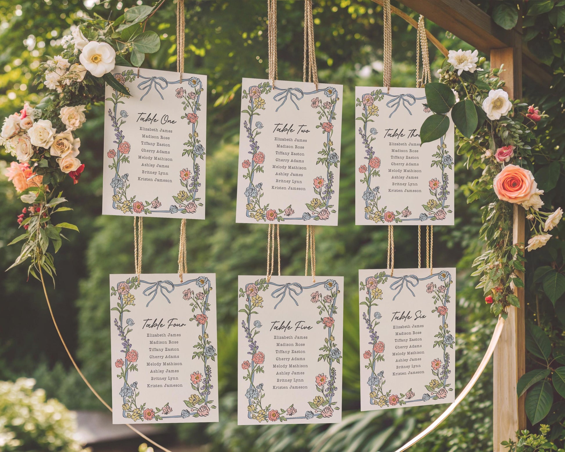 Spring Garden Party Wedding Seating Chart Cards Template, Pastel Floral Love in Bloom Wedding Decor, Coquette Summer Wildflower WP1057