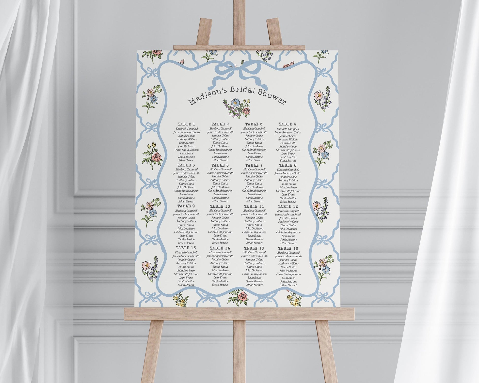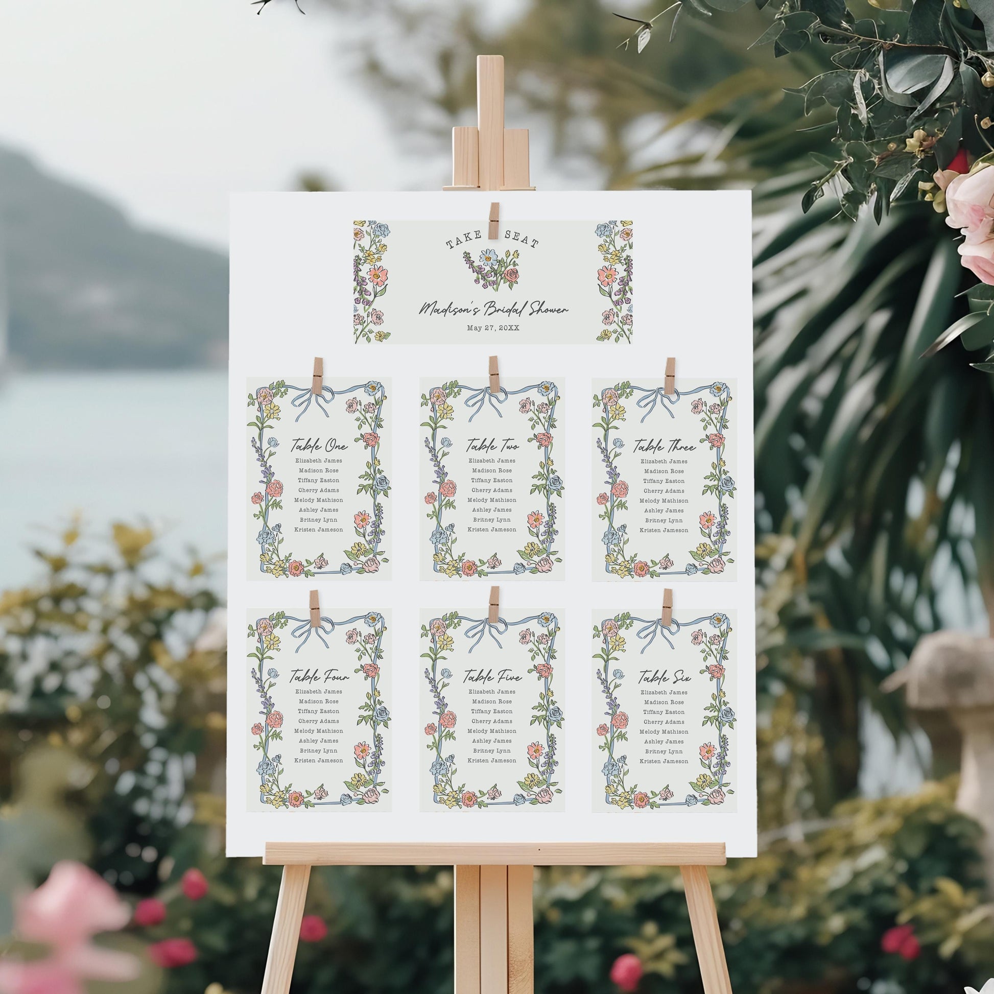 Spring Garden Party Wedding Seating Chart Poster Template, Pastel Floral Love in Bloom Wedding Decor, Coquette Summer Wildflower WP1057
