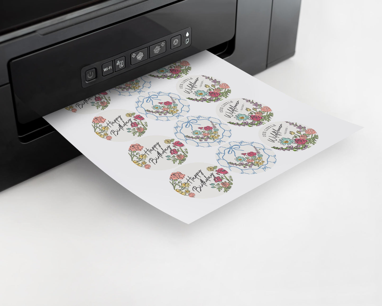 Size: 2"x2" circle perfect for cupcakes, tags, and other party decor
